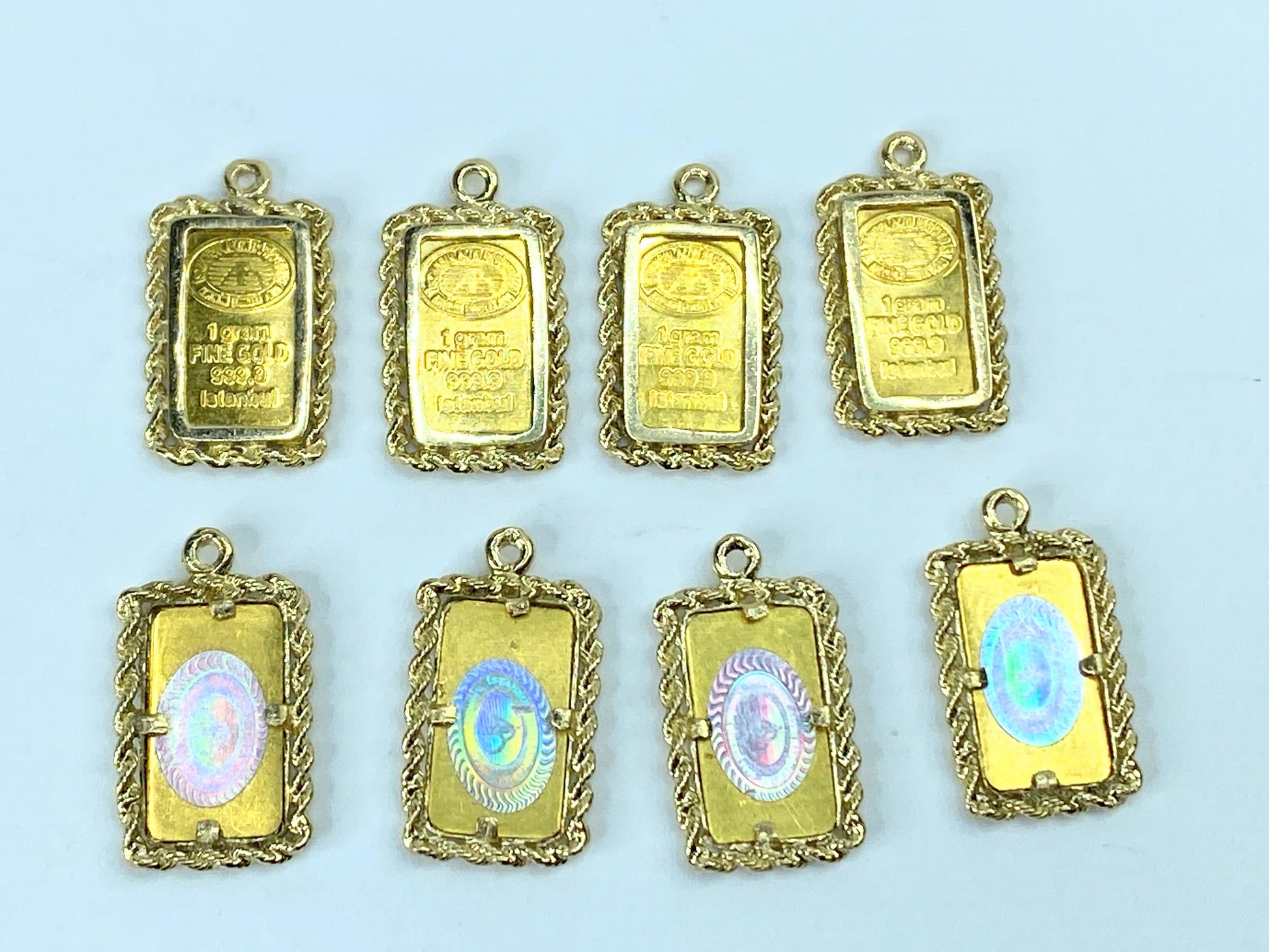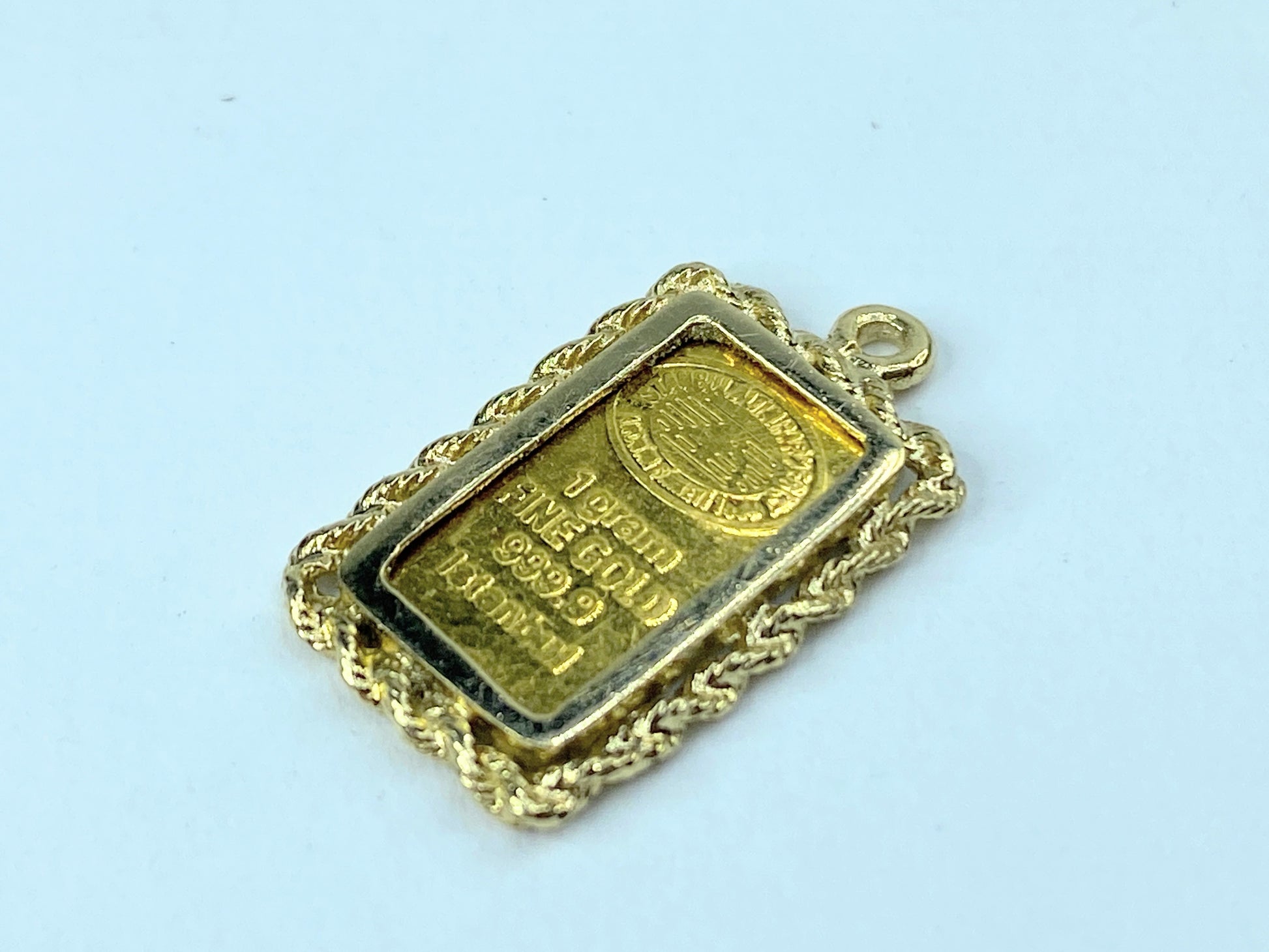 1.00gram Fine Gold Bar in 14K Gold Frame Vintage Charm/Pendant 2.4gm JR960