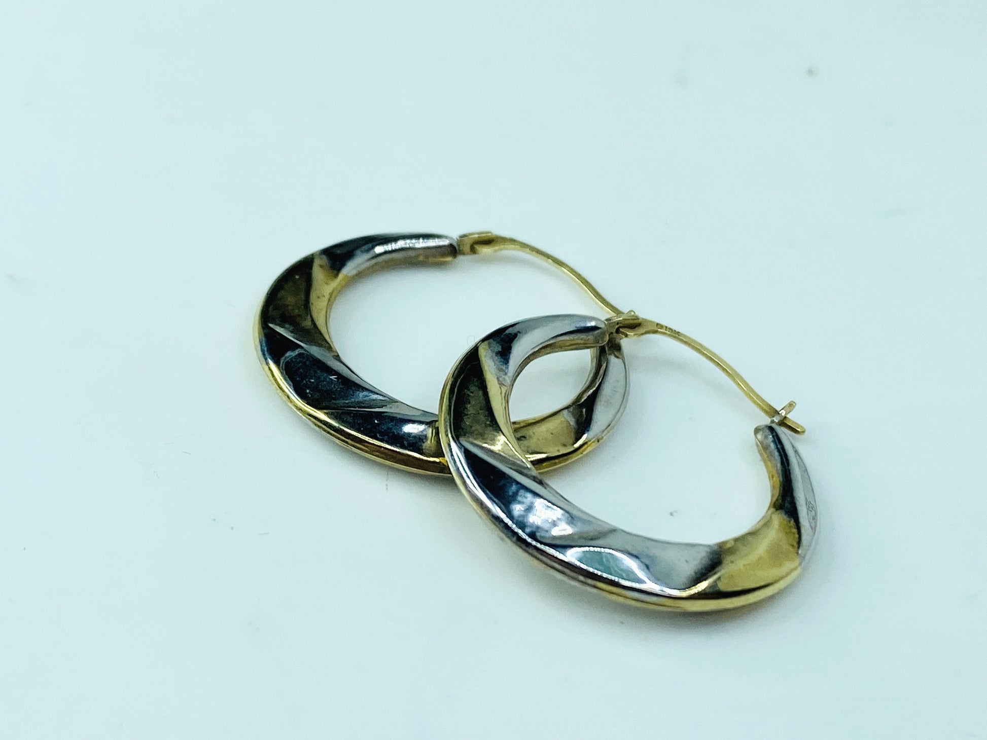 10K two tone gold Hoop dangle earrings 1.0" x 11/16" 0.8g JR1004