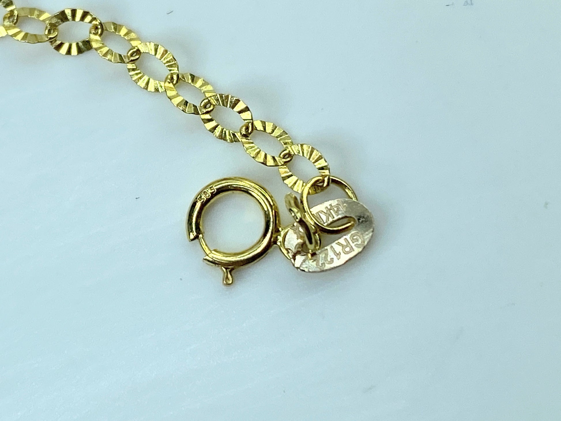 14K tri-colored Quartz Elephant charms etched anklet 9.0" 3.3g JR929