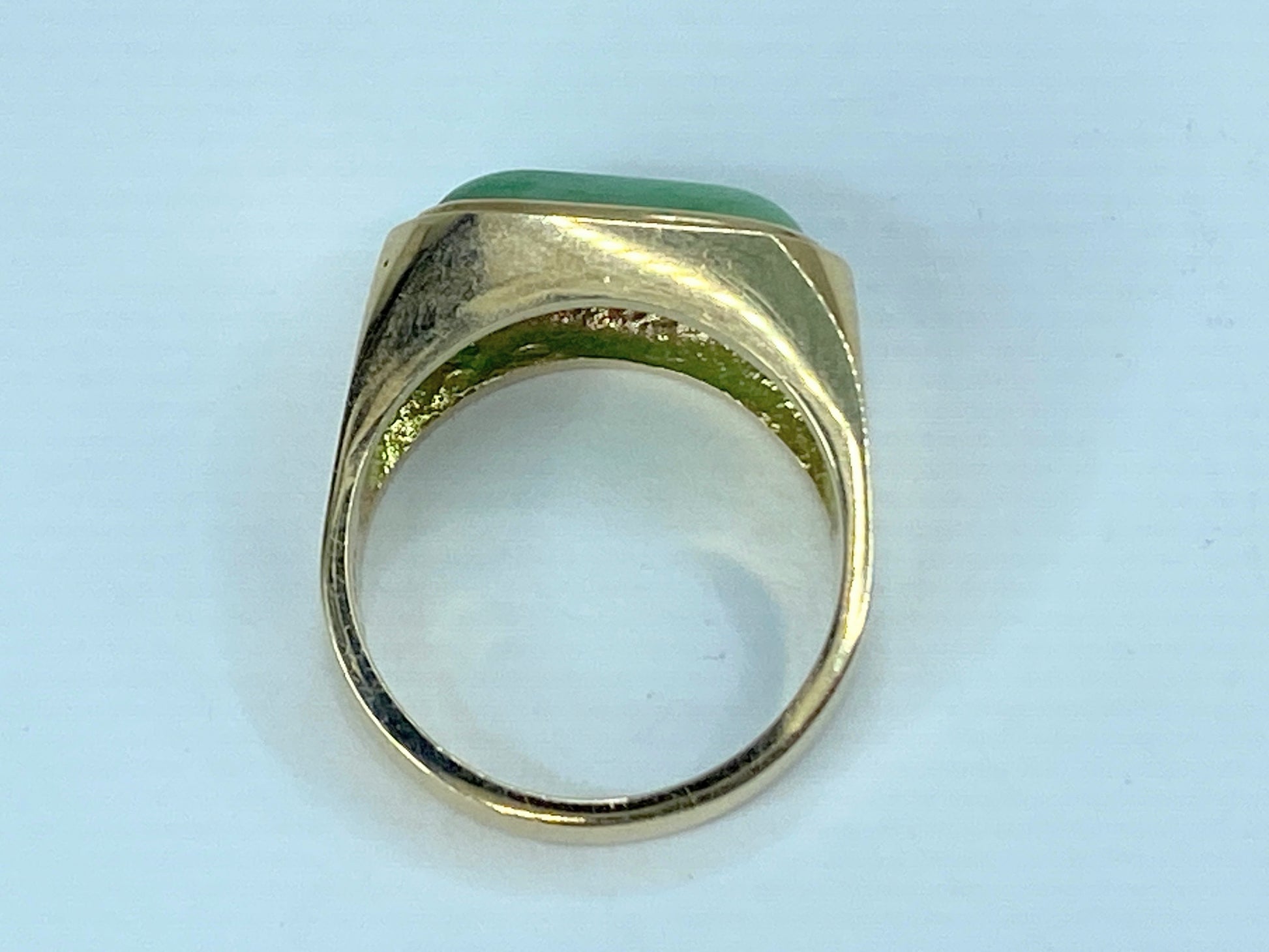 14K yellow gold oval saddle Jade ring s8 9.0g JR953