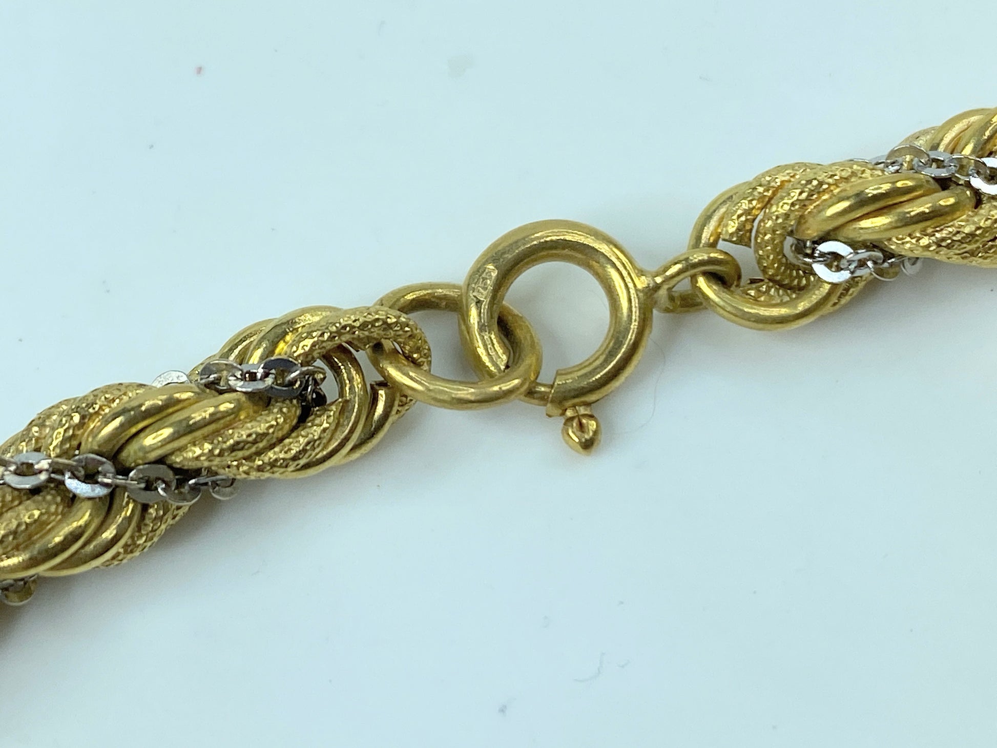 18K yellow gold rope link twisted with white cable link gold necklace completed with tassels and adjustable clasp;