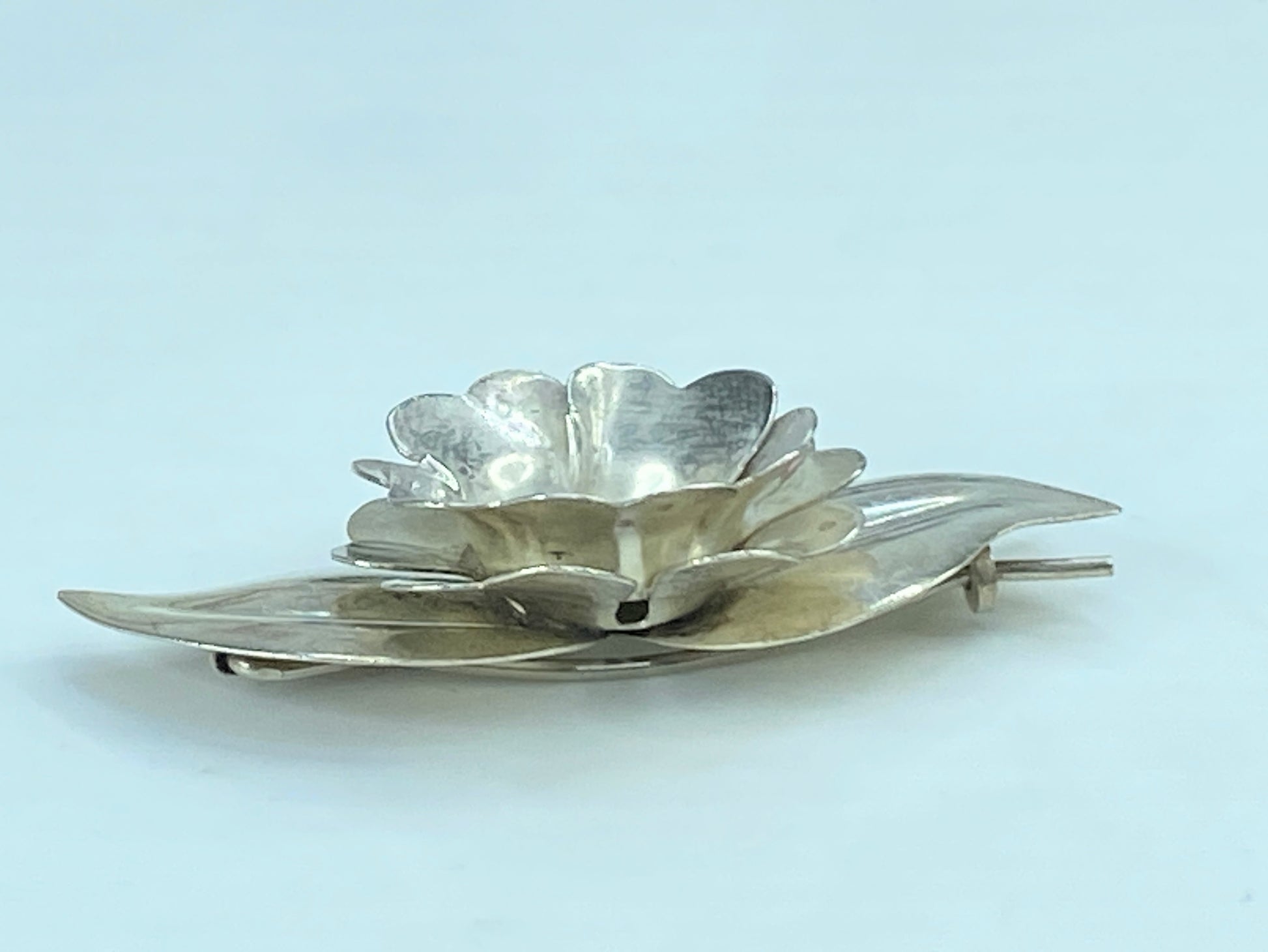 1940s vintage sterling silver floral hair clips by Truart - shiny flower-shaped barrette - beautiful, heirloom-quality pieces! -it sturdy clip securely holds a generous pinch of hair
