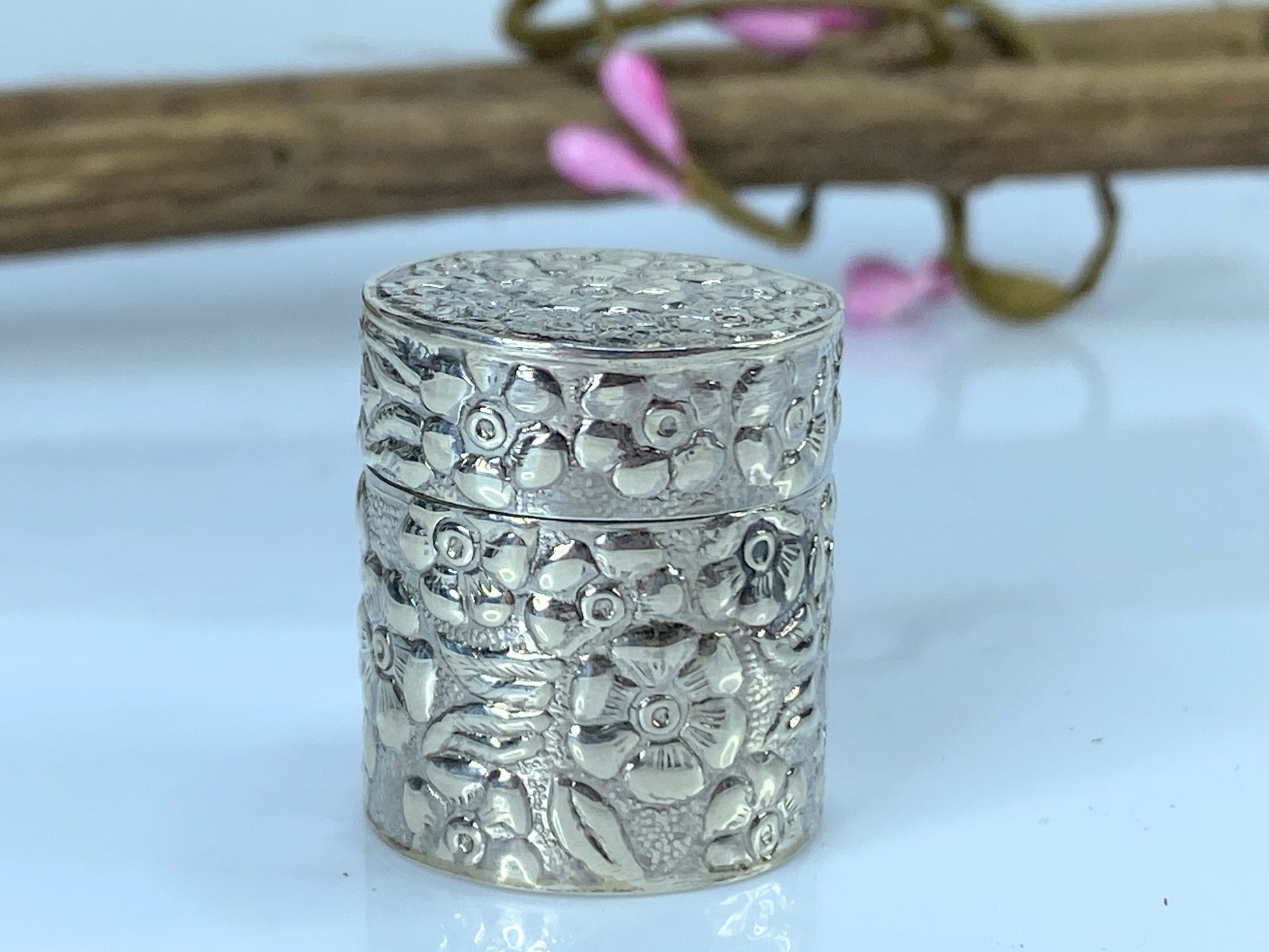 925 Sterling Silver Decorative Flower Hinged Box Trinket thimble case 12.7g SS85