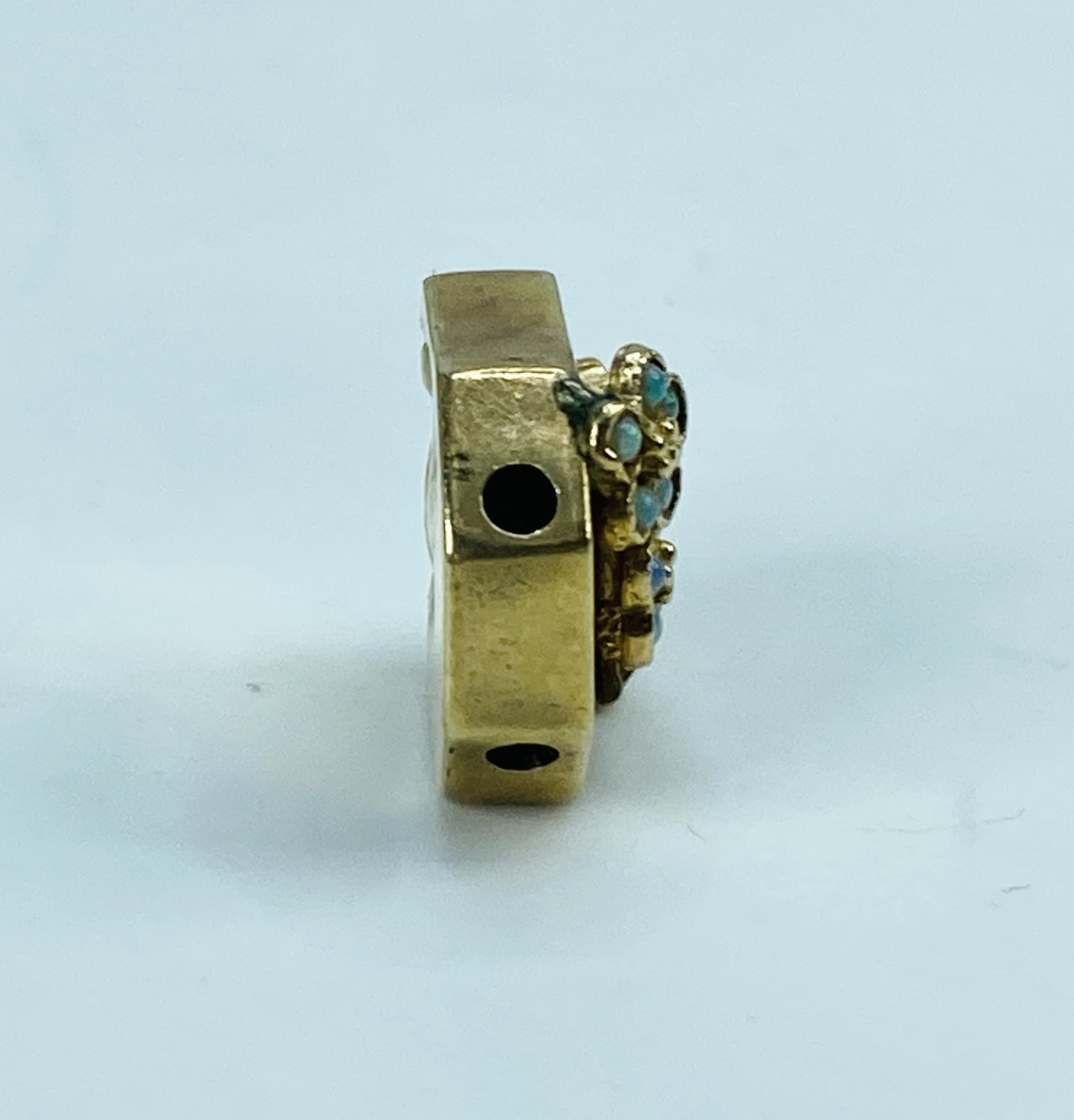 Antique 14K Gold Floral Opal Seed Bead Sliding rectangular Charm JR1231