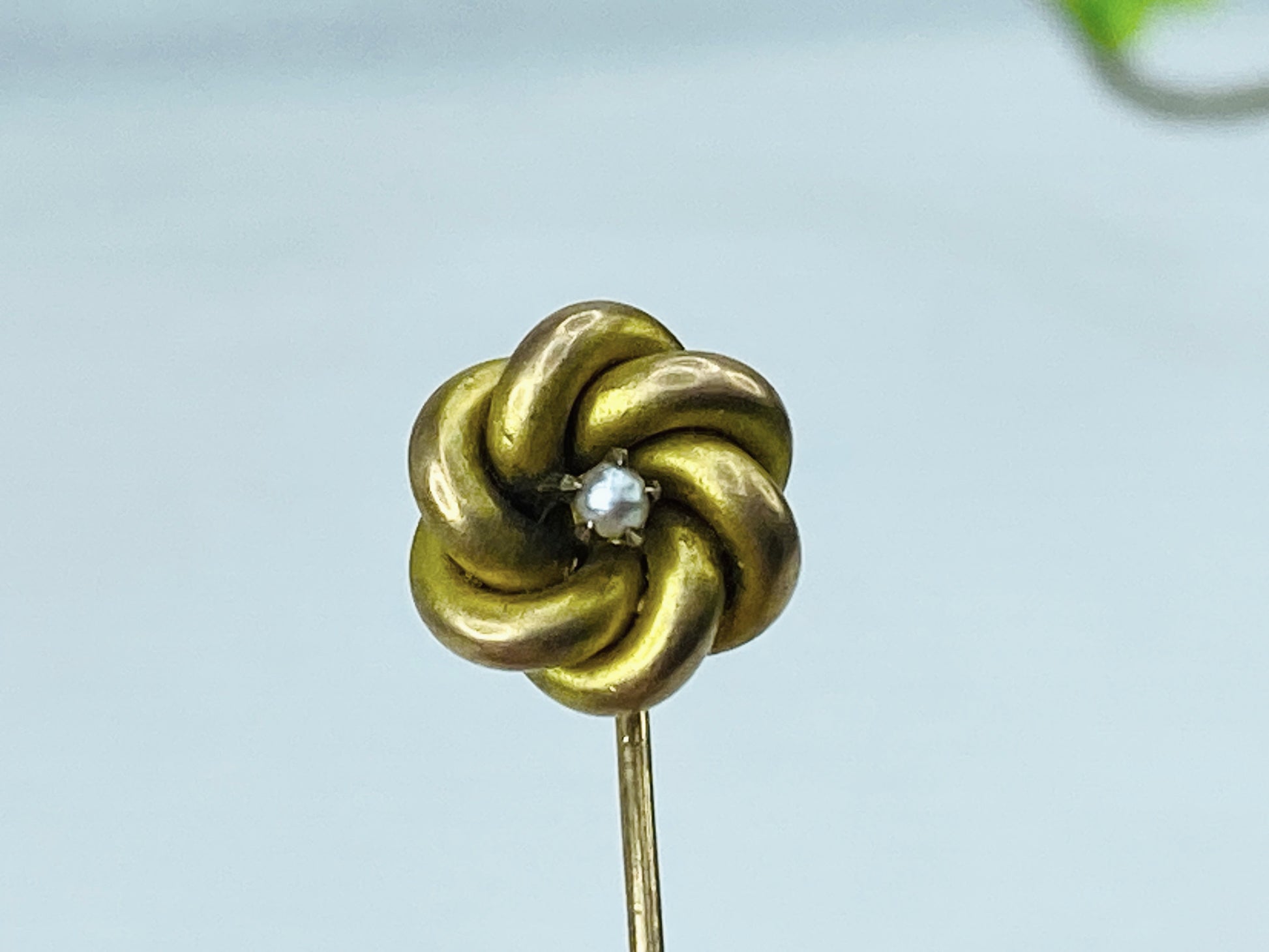 Antique 14K Gold Knot Stick Pin w/Seed Pearl Early 20th Century Stickpin JR1224