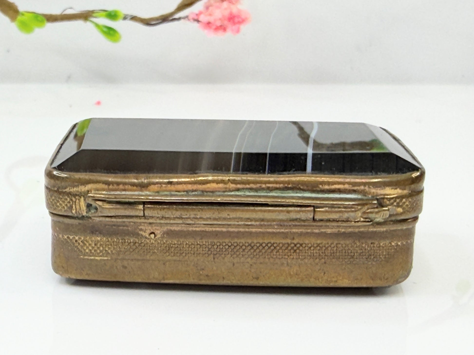 Antique British Banded Agate Gilt Metal Snuff Pill Box SS208