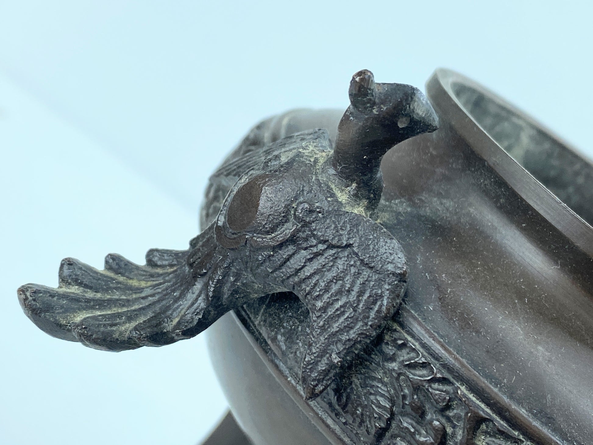 Antique Chinese 20th Cent Bronze Tripod Censer with Phoenix handles 7 1/4" A347