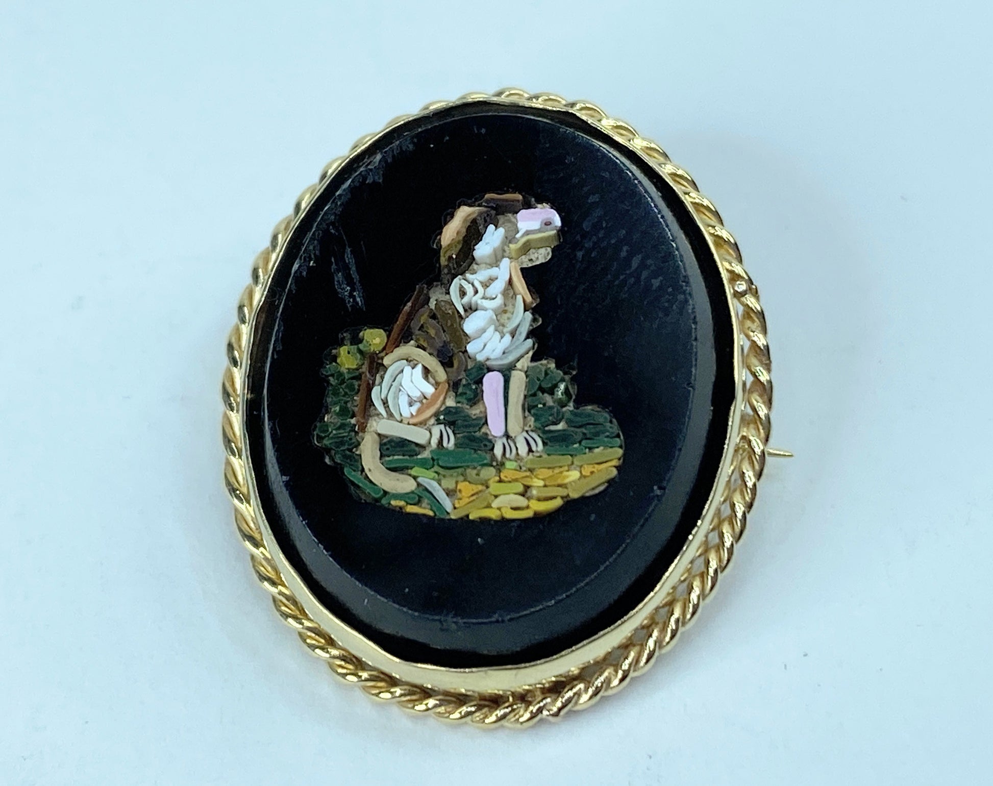 Antique Micro-mosaic 14k yellow gold rope bezel Dog Brooch 8g 30mm JR959