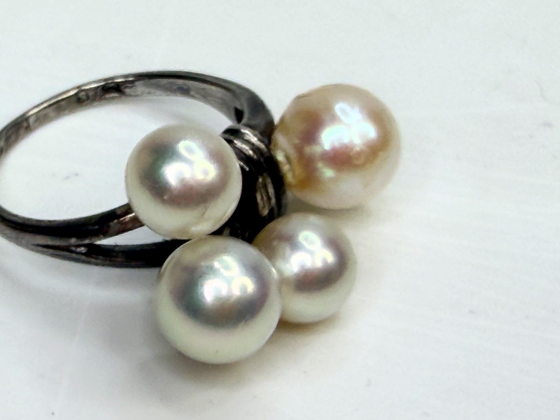 Art Deco Mikimoto Four Pearl Cluster Ring Silver Size 5.75 JR1349