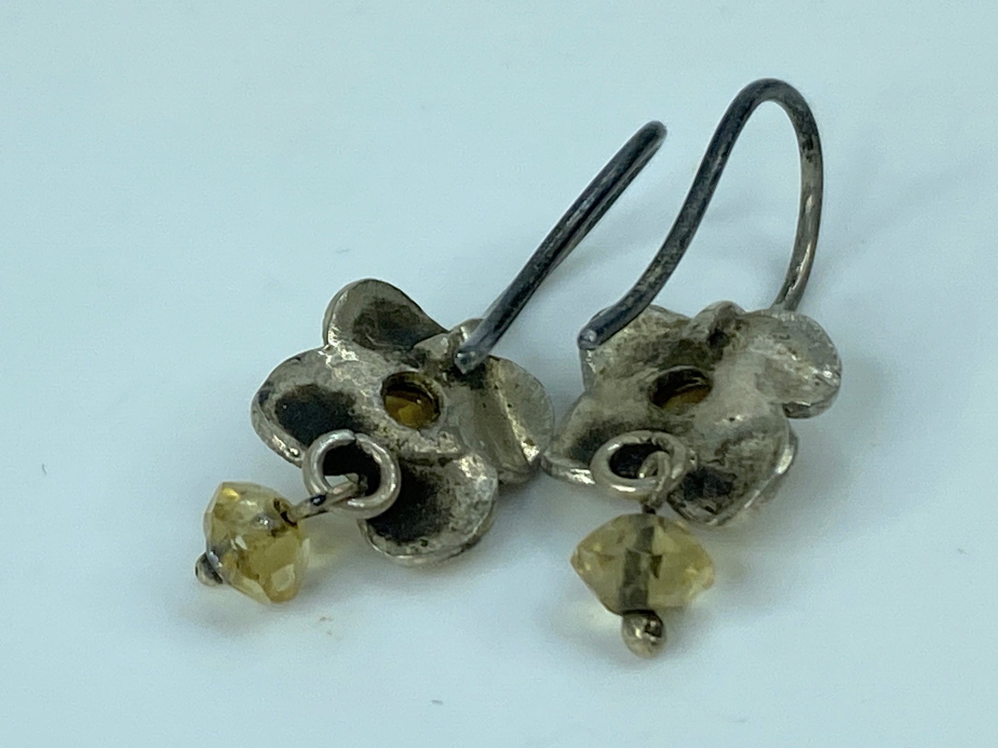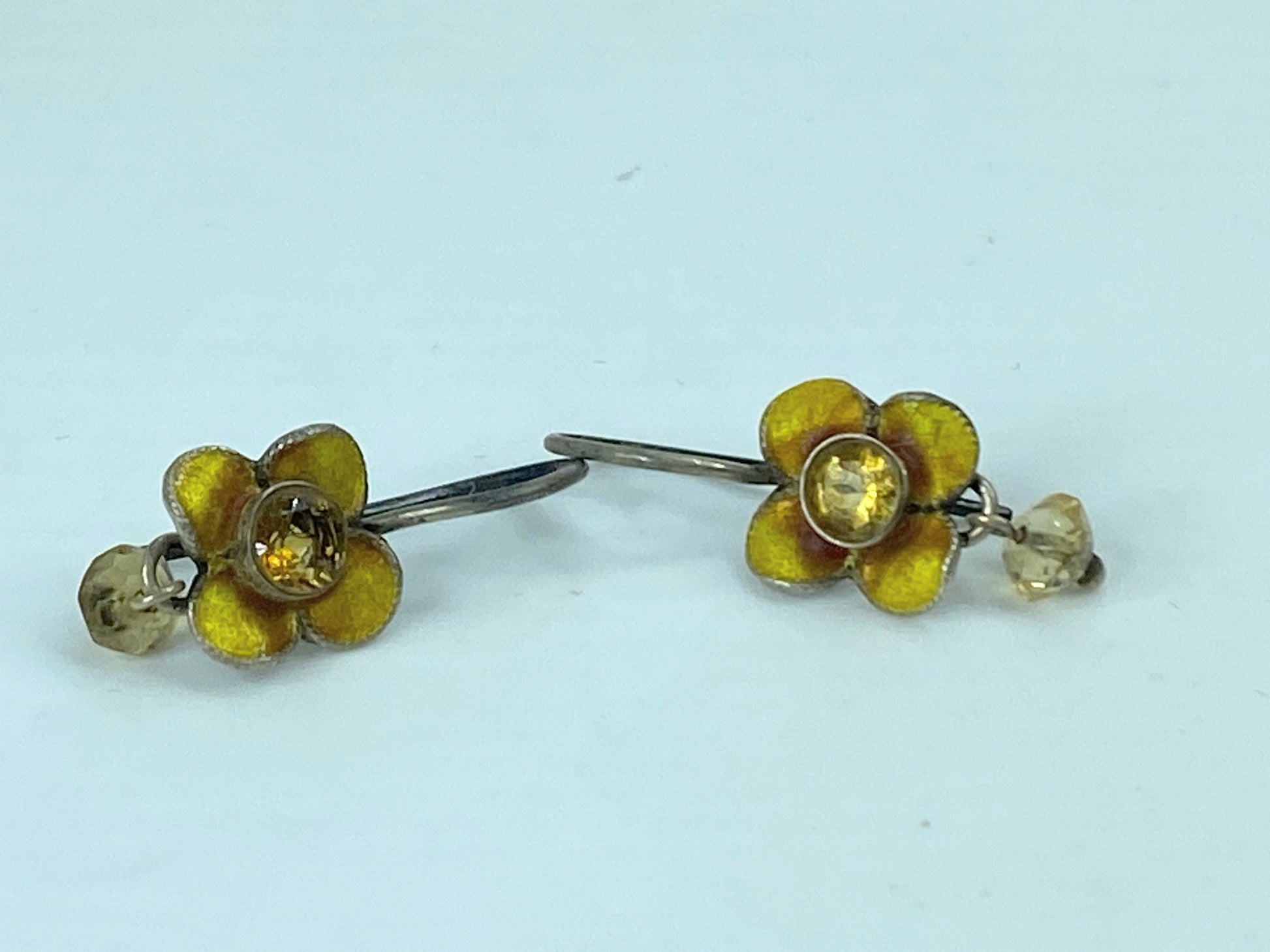 Art Deco Sterling silver Citrine Enamel flower dangle earrings 1.0" JR709