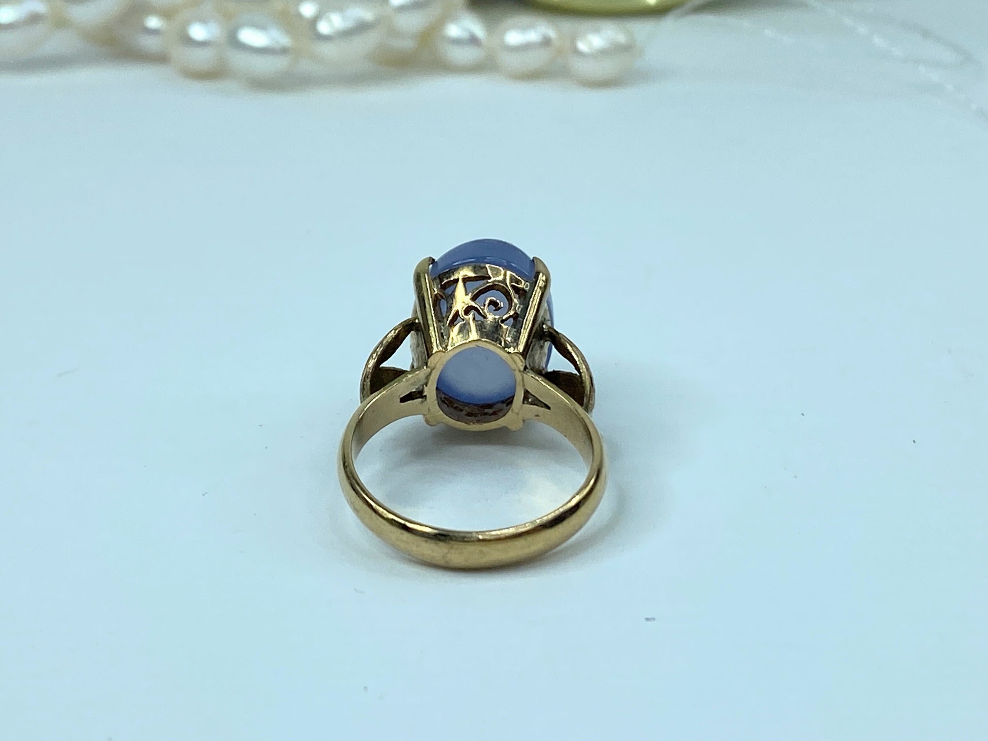 Art Nouveau 10K yellow gold Iolite cabochon statement ring sz 8 7.9gm JR951