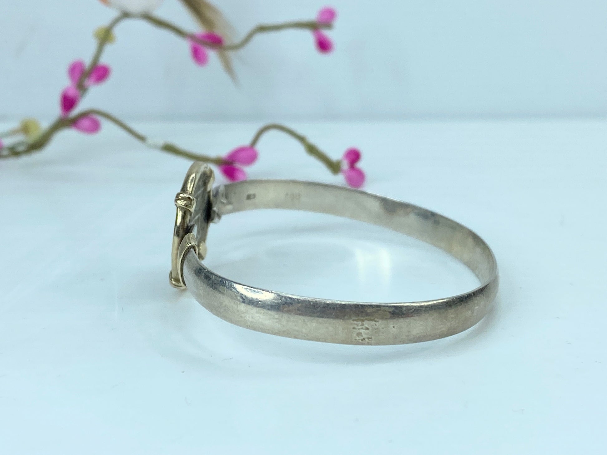 Atocha Treasure Coin Hook Bracelet, Sterling Silver with 14K Gold Frame, Prongs and Wrap.