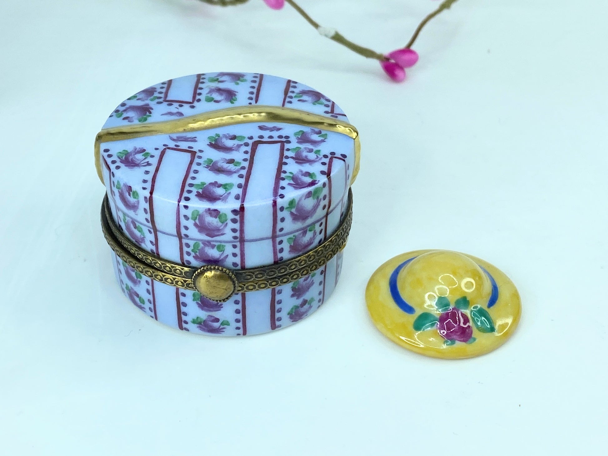 Chanille Limoges France Sevre Roses Hat Box for Collectors with hat A550