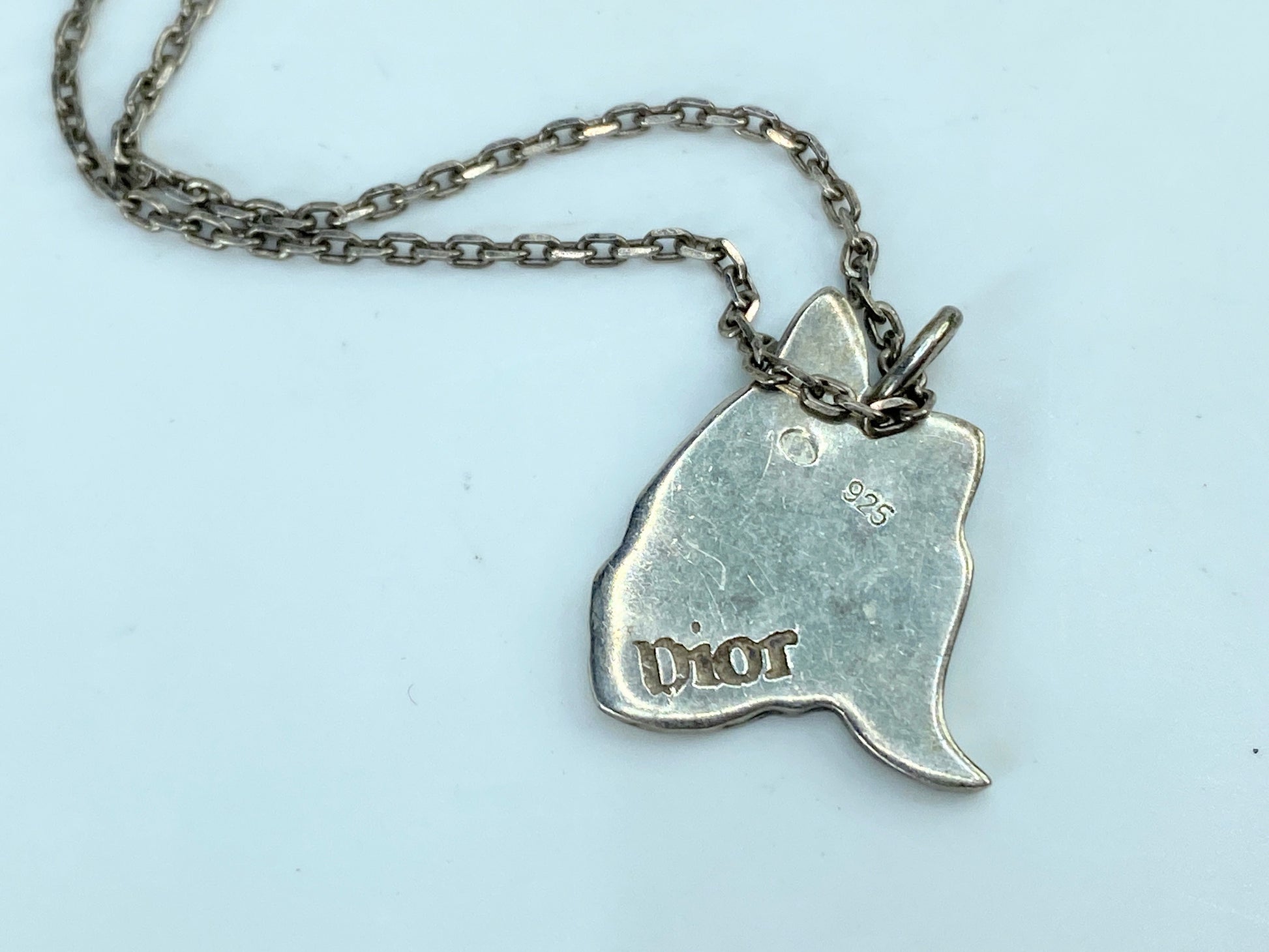 This Dior summer holiday necklace from the J’Adore Dior SS02 collection uses enamel to display the face of a “Cry Baby” Mermaid set in a .925 sterling silver pendant. This piece of jewelry also features a .925 sterling silver necklace with a lobster clasp closure.