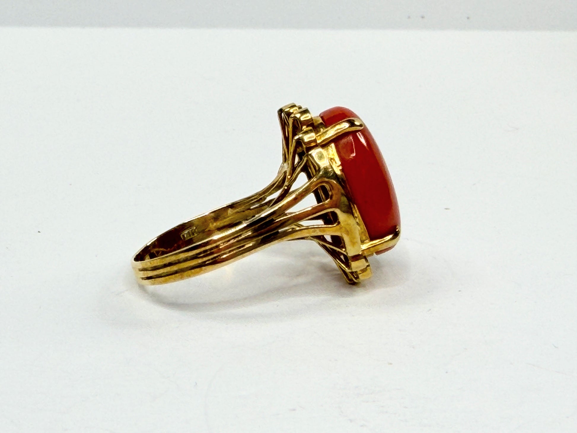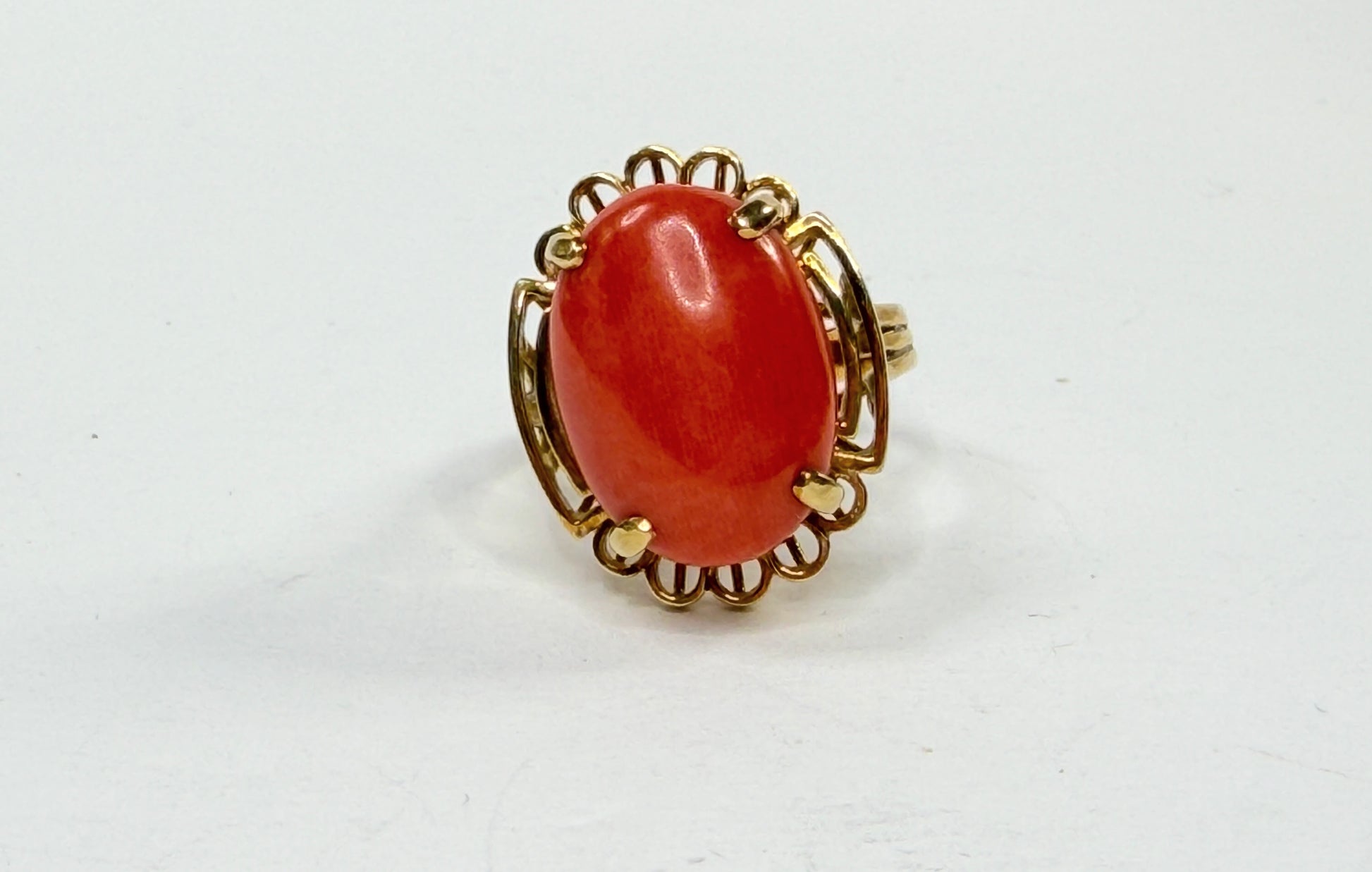Early 20th Century 14K Gold Natural Coral Oval Ring Size 9.75 7.2g JR1194