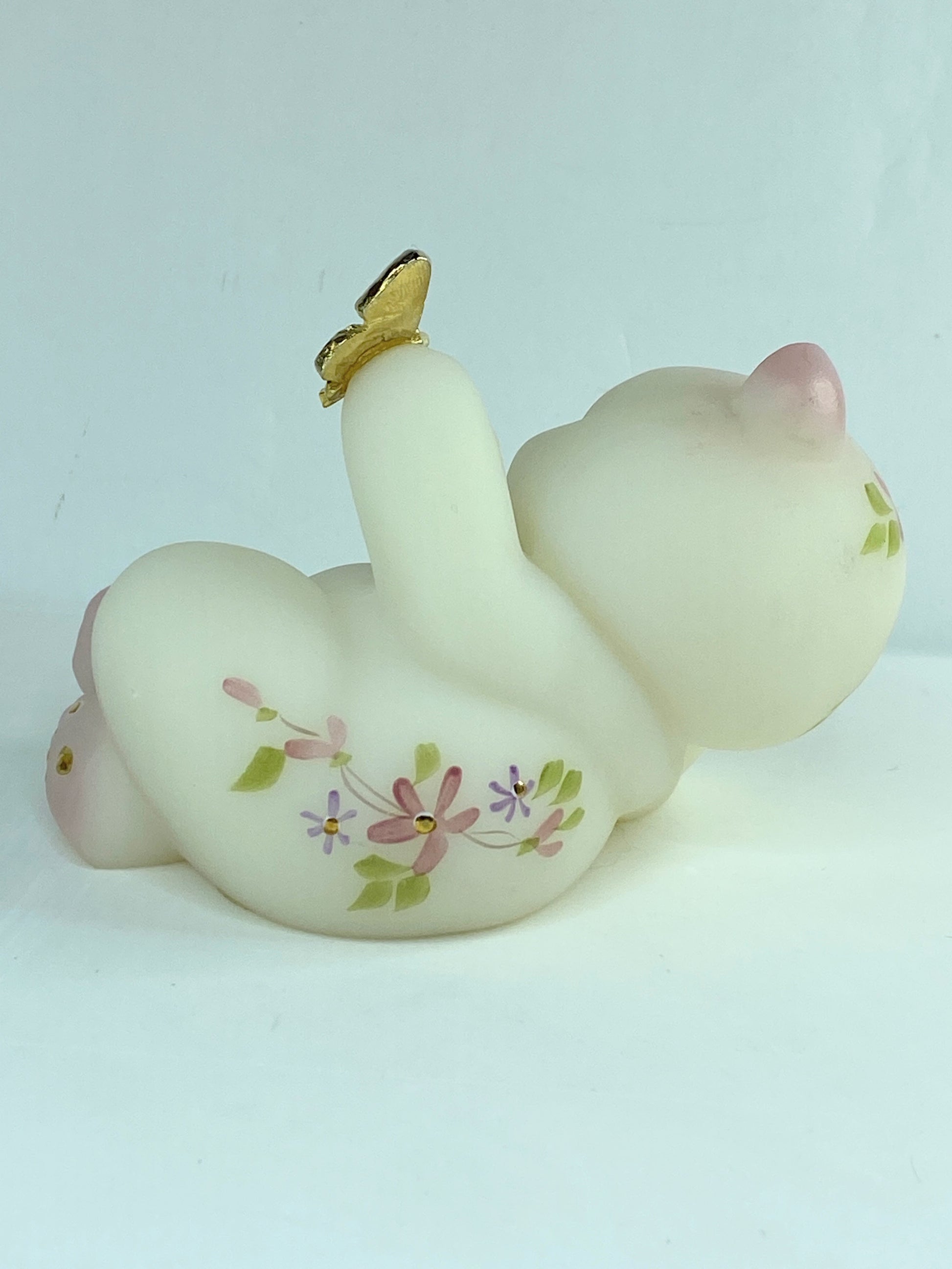 Fenton Art Glass Satin Bear with Golden Butterfly with flower w/tag A585