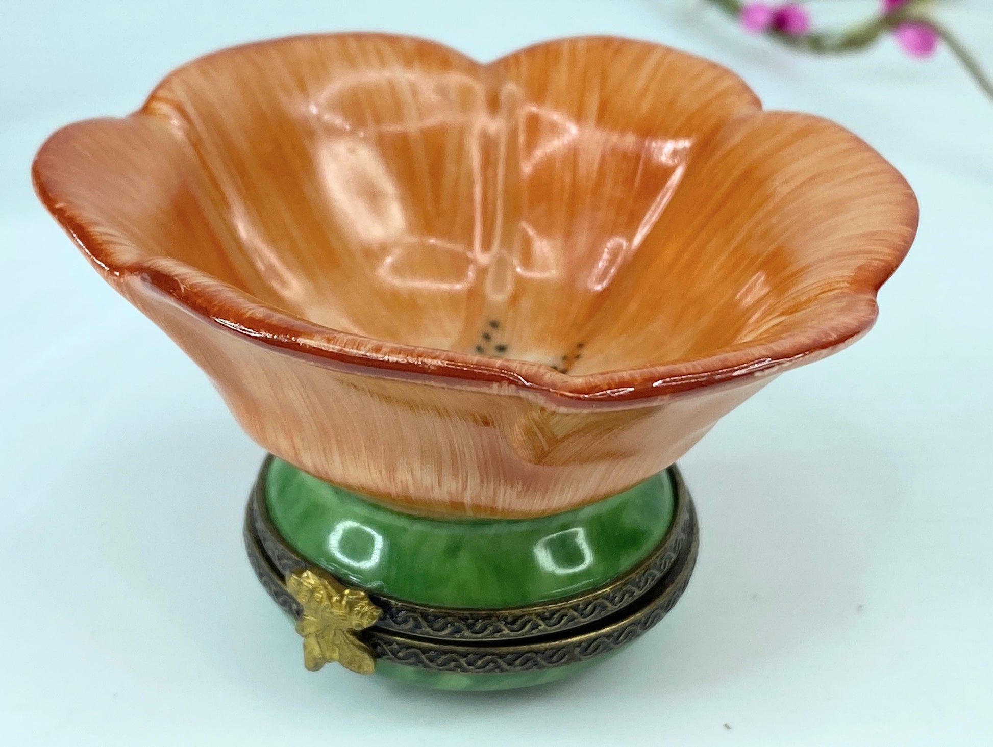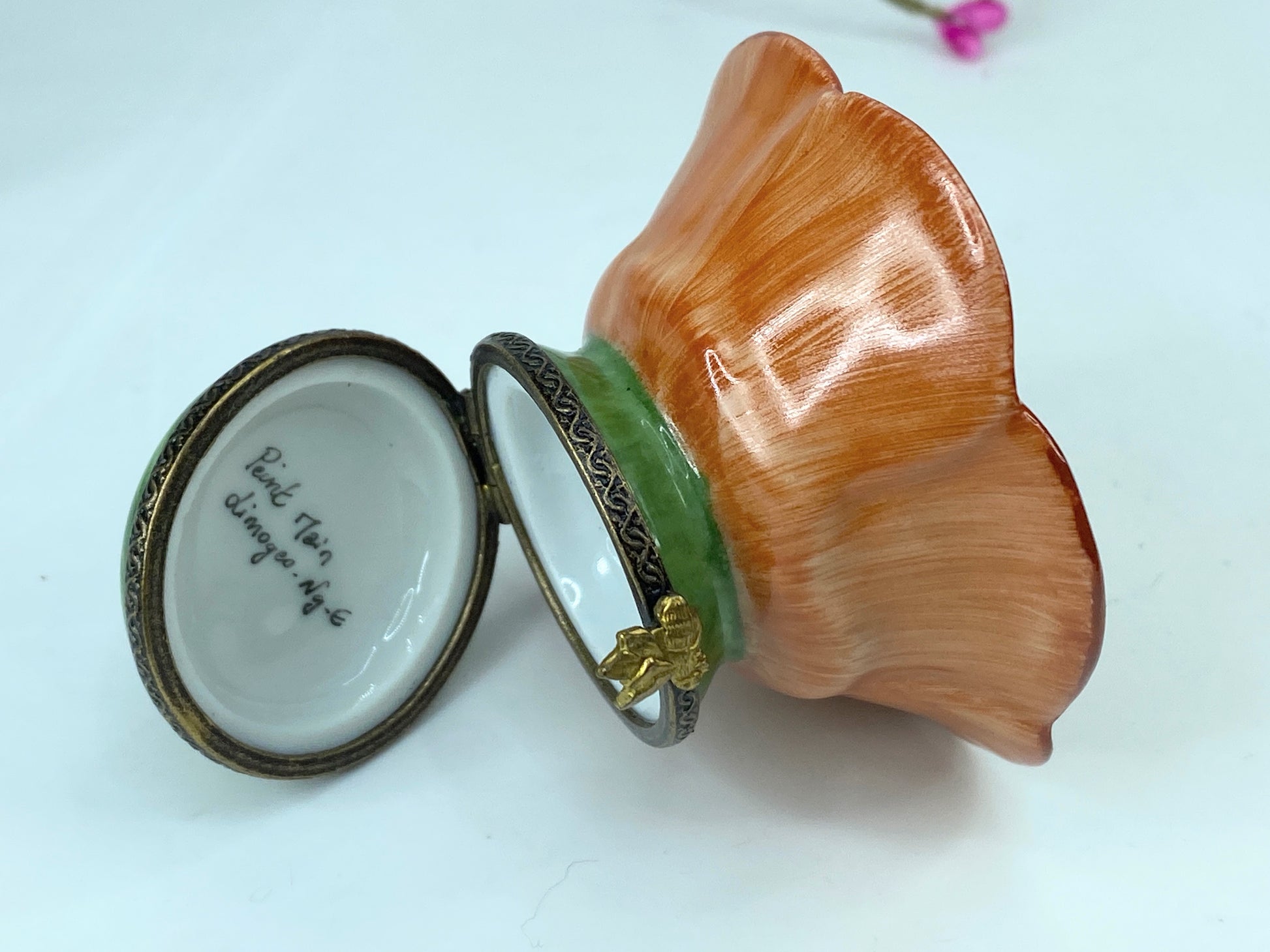 France Limoges Vibrant Orange Flower Box for Nature Lovers signed A545