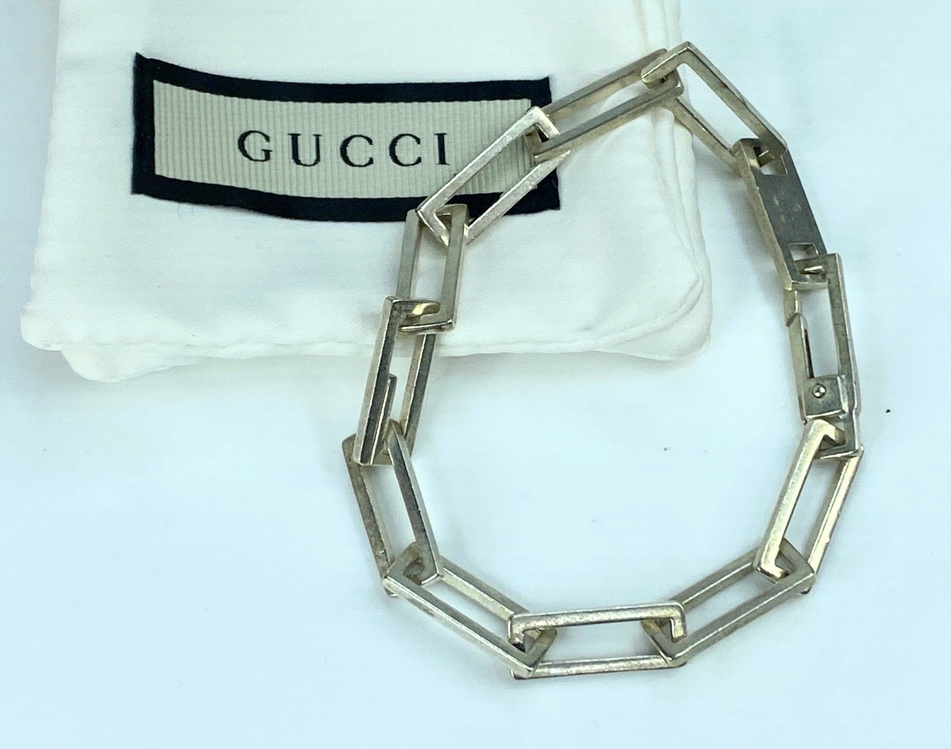 Gucci sterling Rectangular corner edge men bracelet w/pouch 7.75" 16.4g JR846