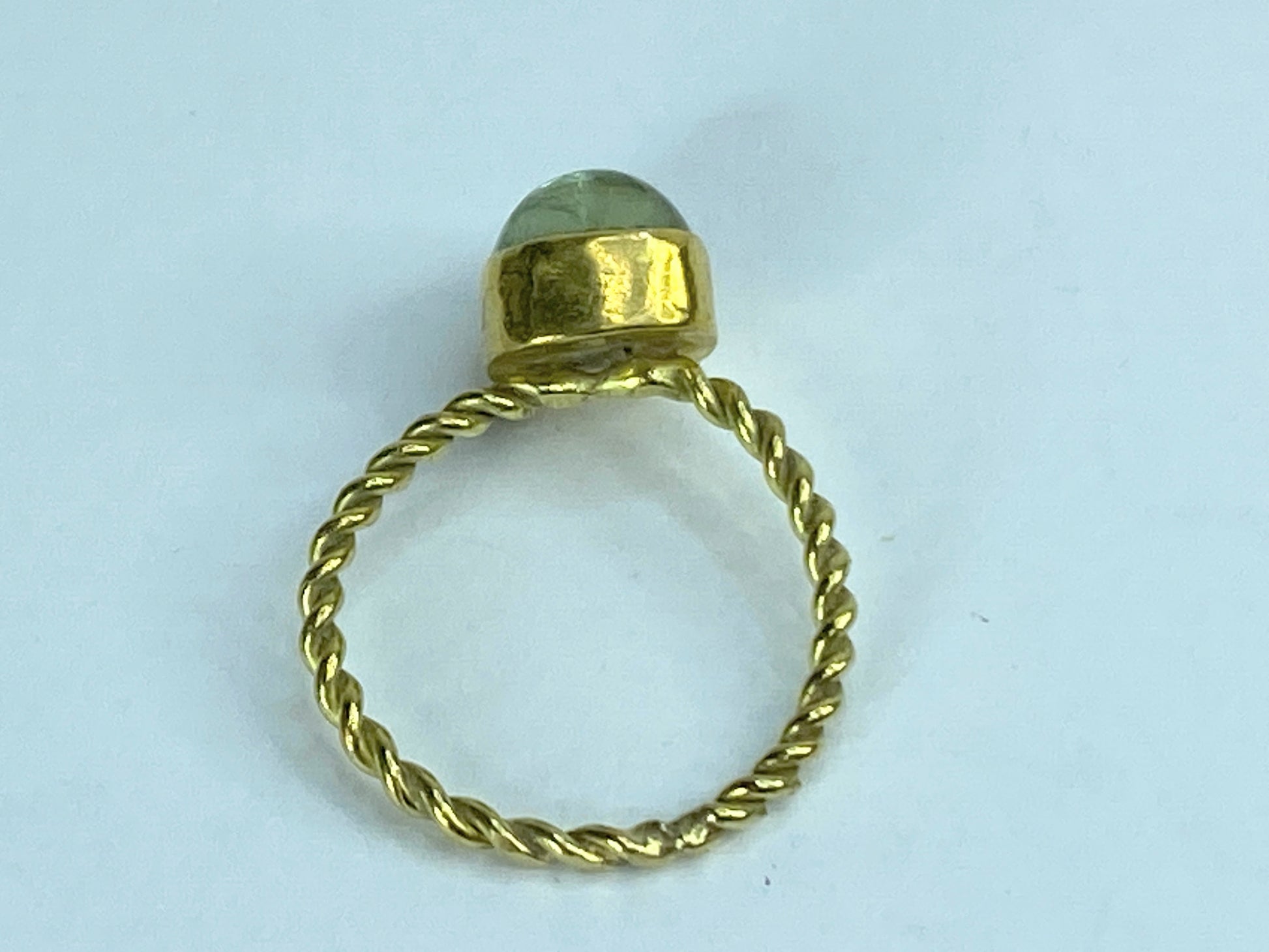 Handmade 18K Spinel Ring, Chartreuse Spinel, Bezel-Set, Twist Shank JR968