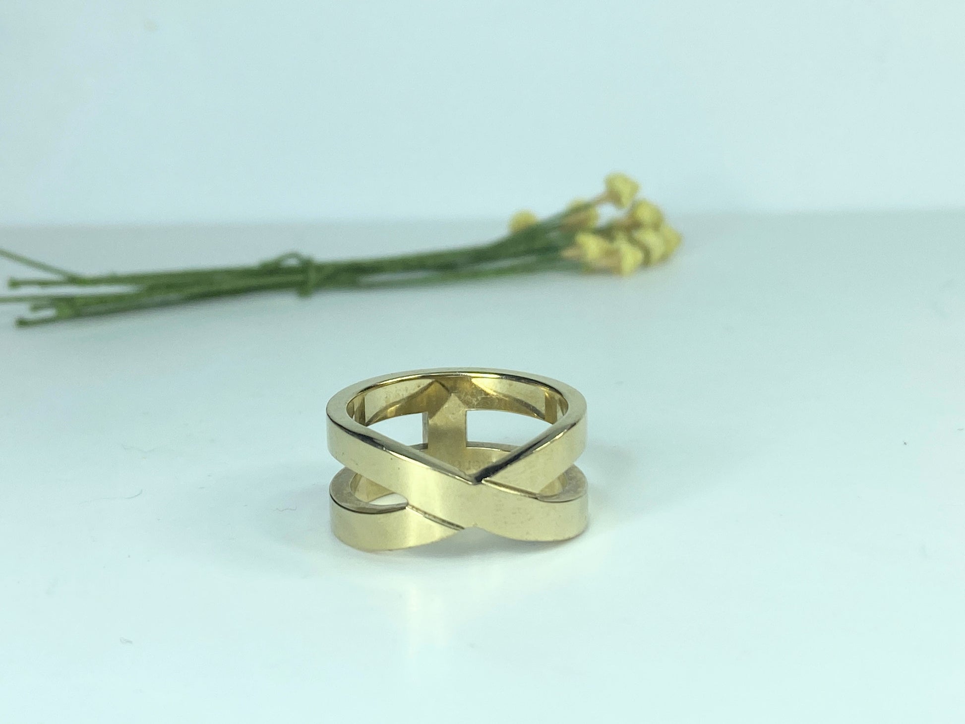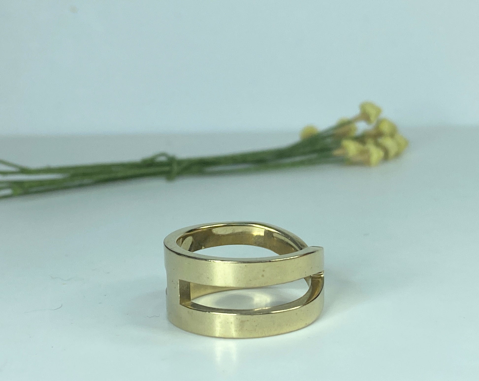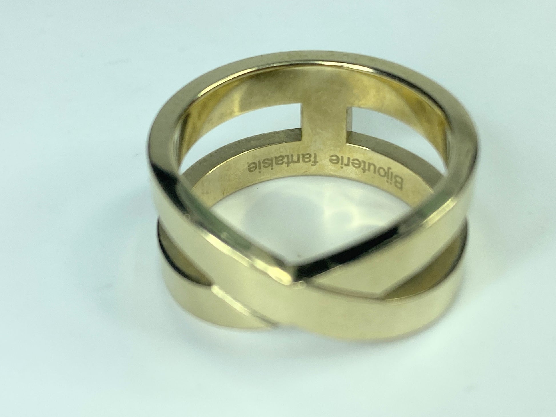 Hermes Bijouterie Fantaisie H Scarf Ring Gold Metal in box GS585