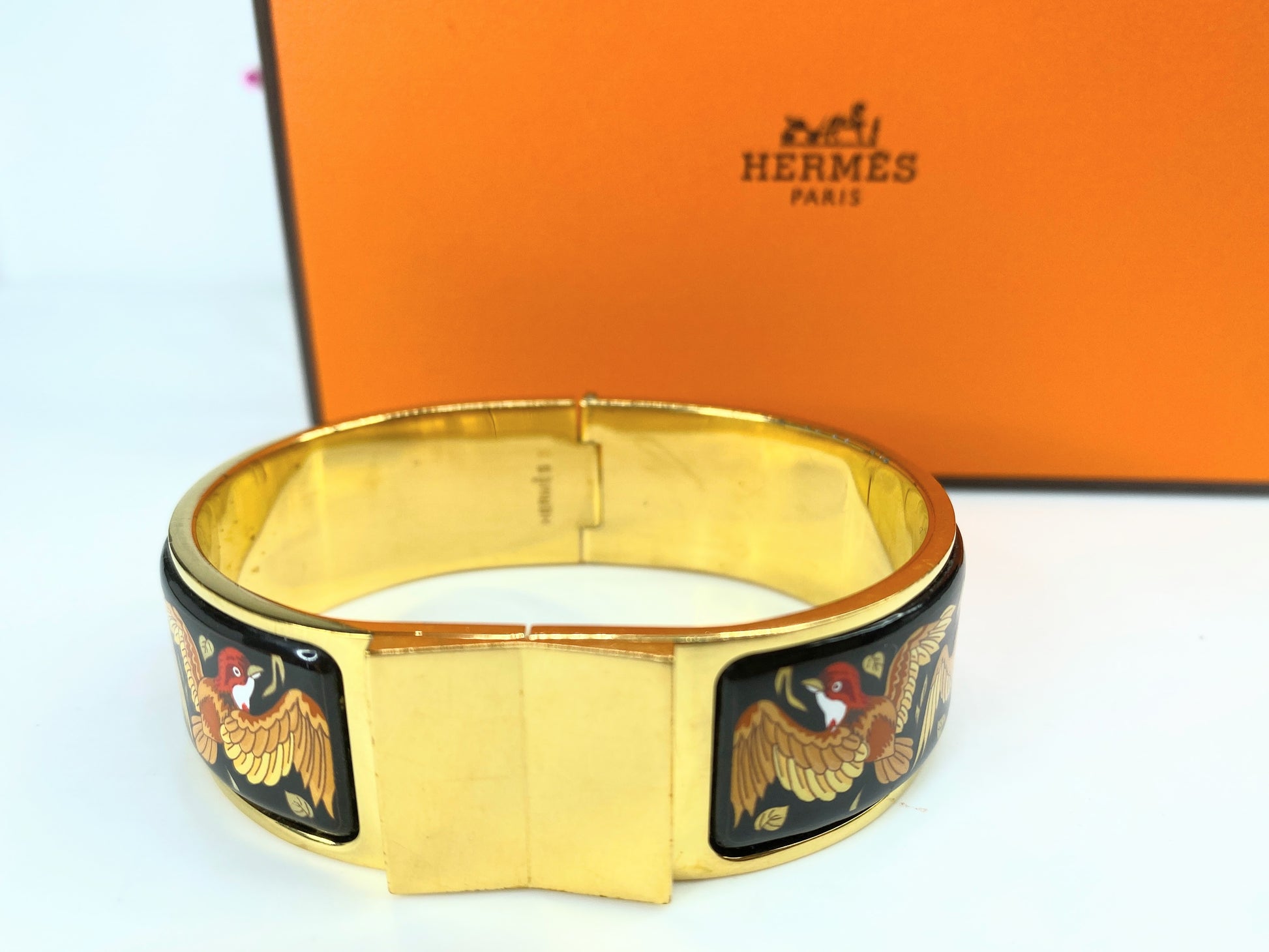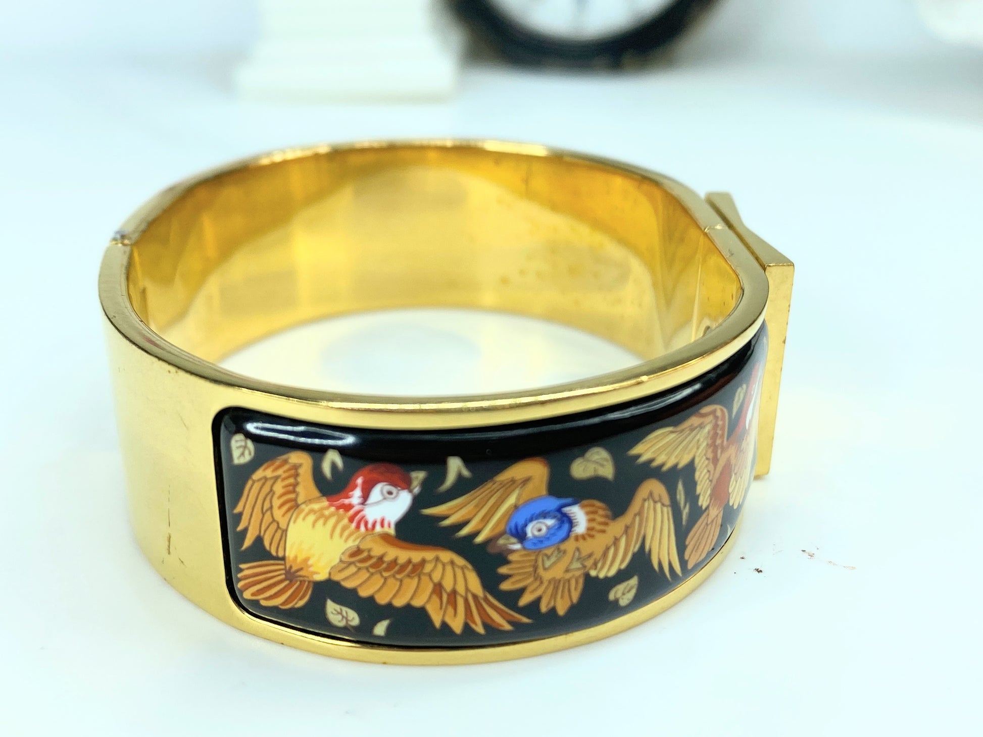 Hermes Enamel Printed Clic Clac Wide song bird Bracelet GM w/box 6.75" GS567