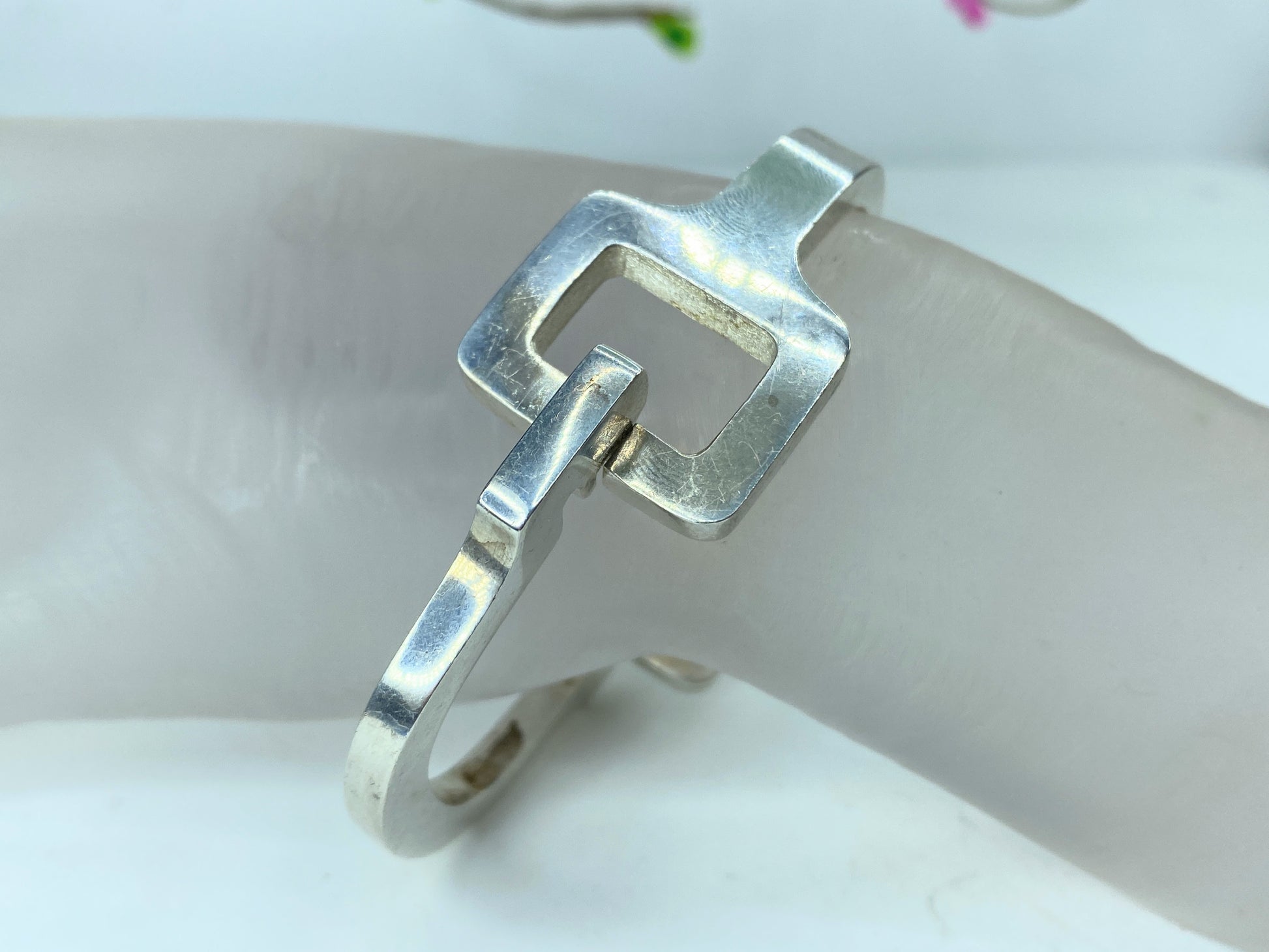 Huffy Signed JMSD Mexico Sterling Silver Hinged Clamper Bracelet