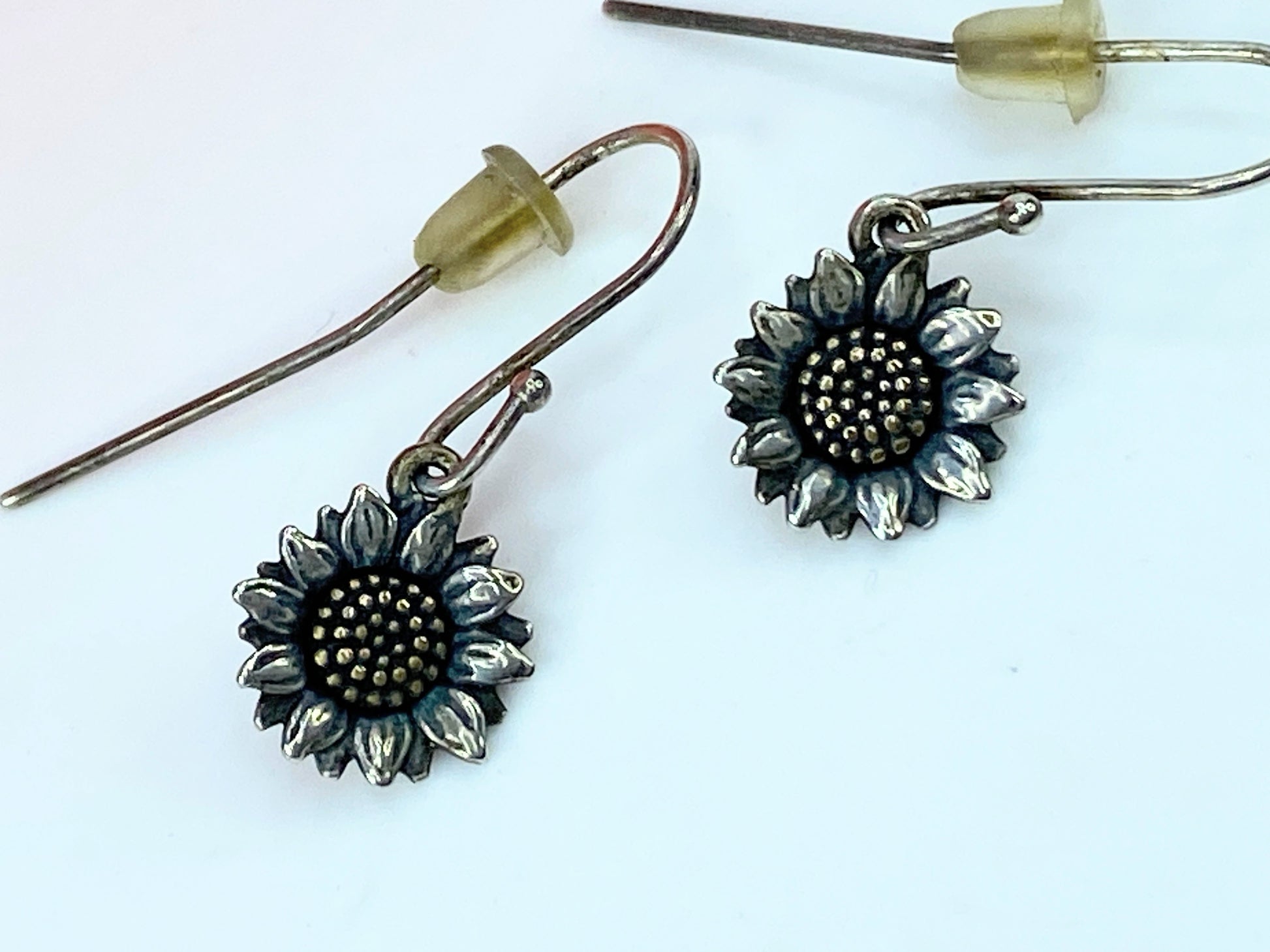 The Wild Sunflower Dangle Earrings with their sterling silver petals circling a detailed bronze center. Pairs beautifully with the rest of the Wild Sunflower Collection.