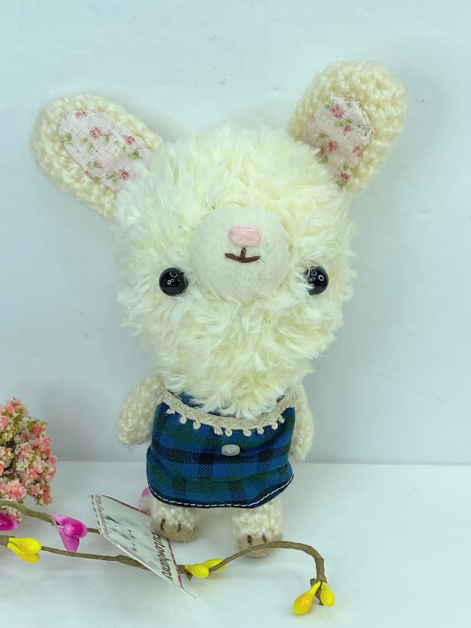 Japan handmade White hair Bunny plaid Romper doll 5.5" New A387