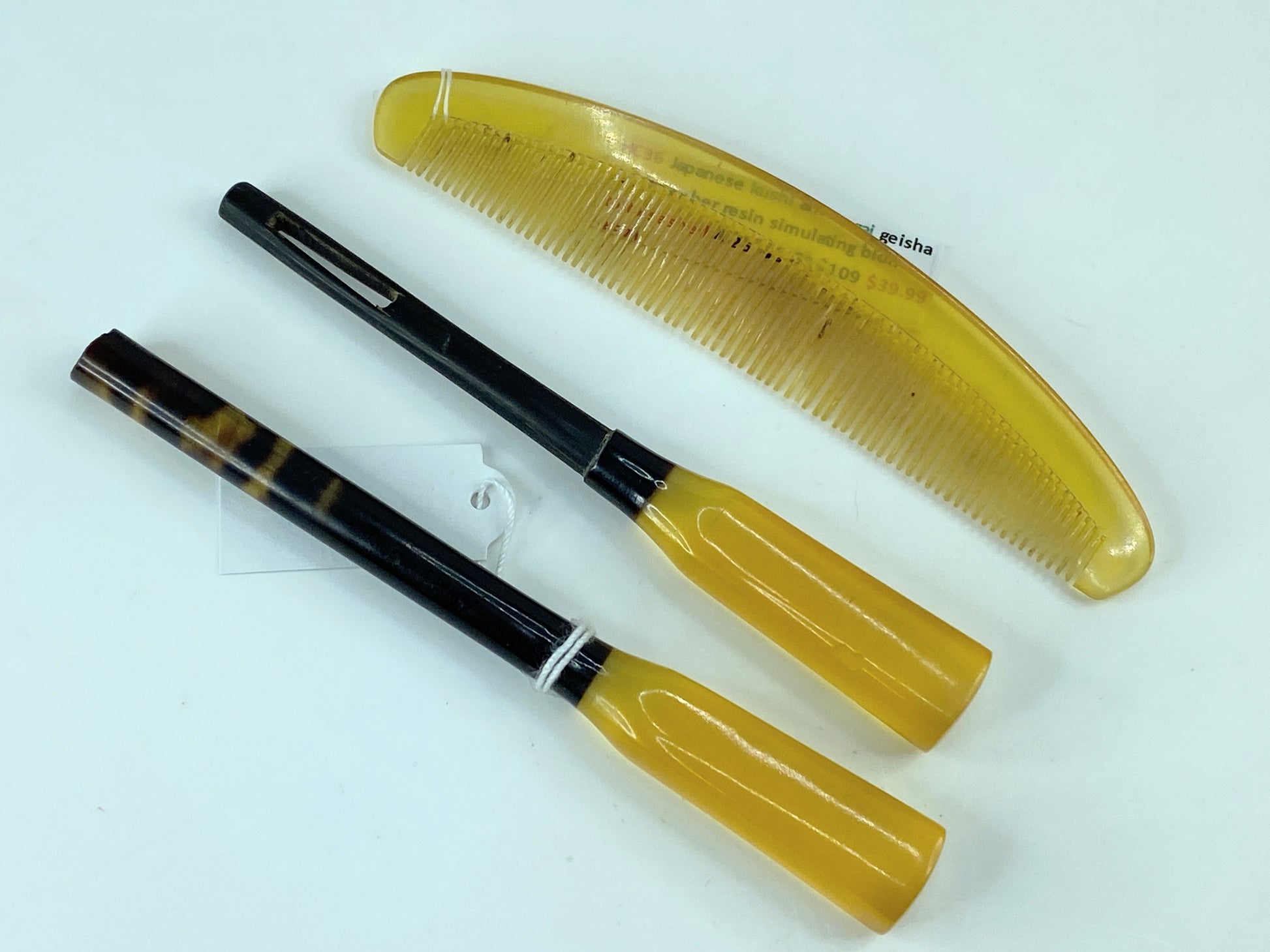 Japanese Kanzashi Kougai faux turtle resin kimono hair ornament 21.2g GS587