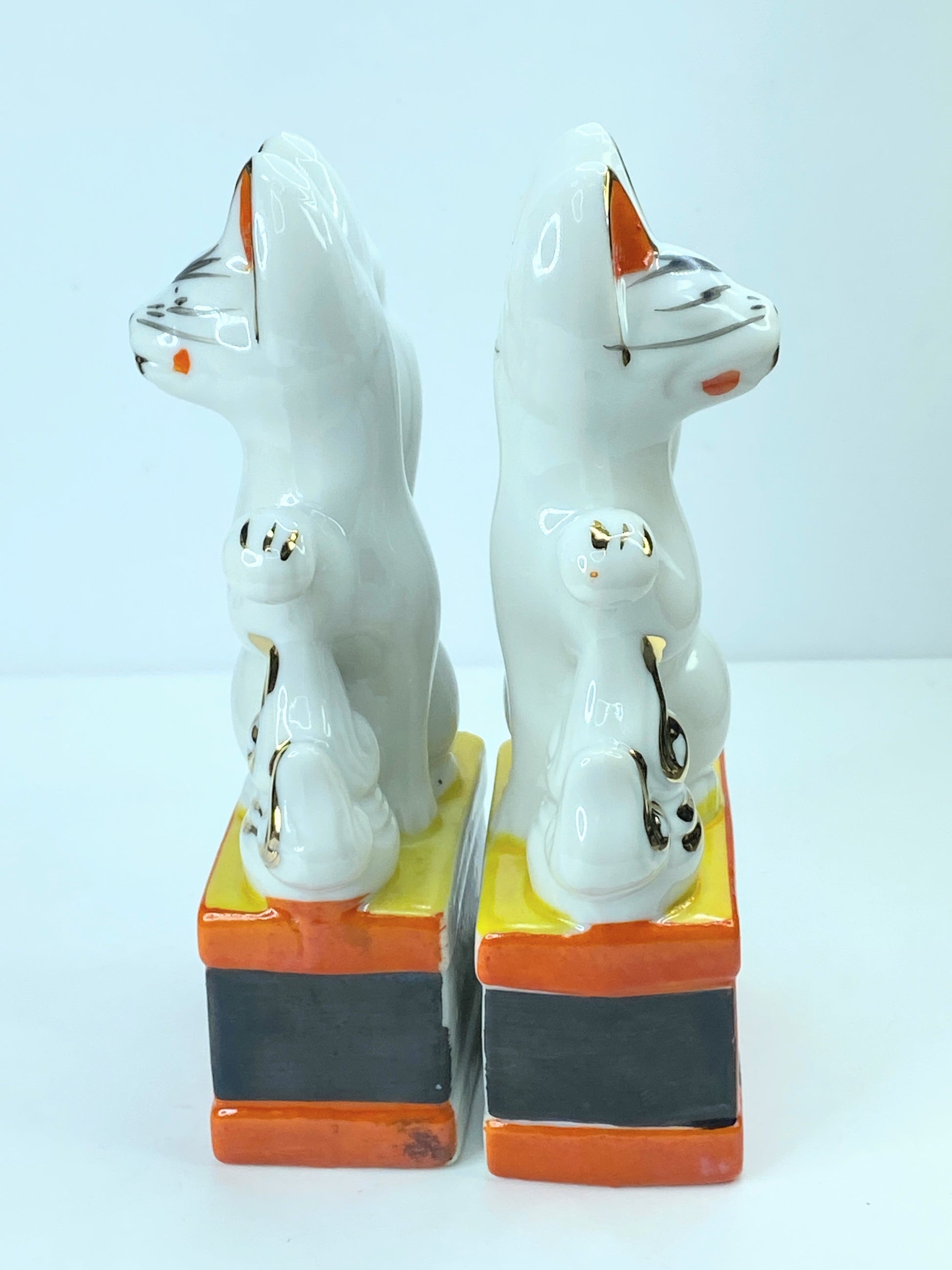 Japanese vintage pair of KITSUNE dolls, Porcelain from a Shinto shrine, Altar Foxes art, Japanese guardian deity, Okimono. It is in excellent condition, no chips, cracks, or repairs.