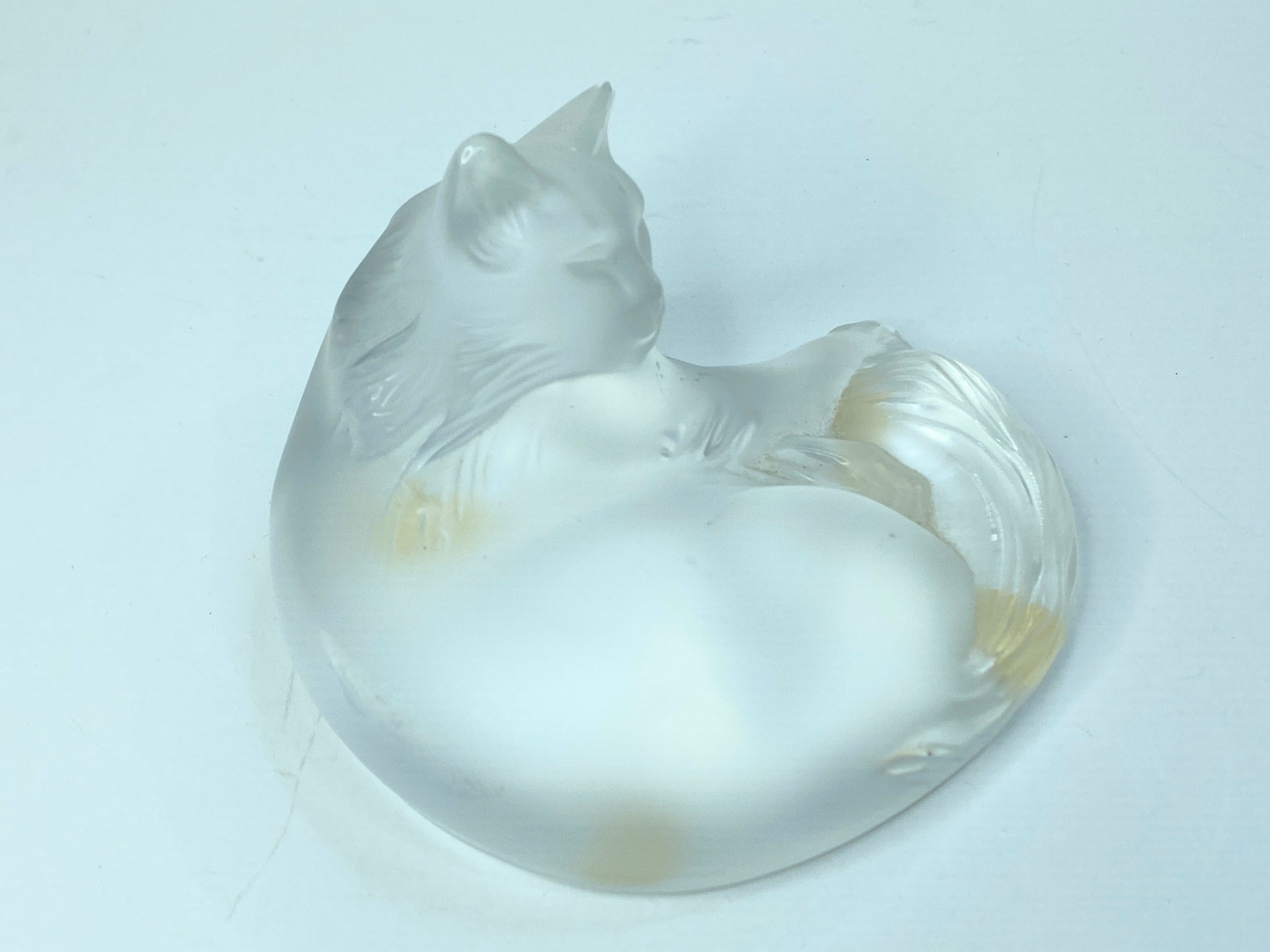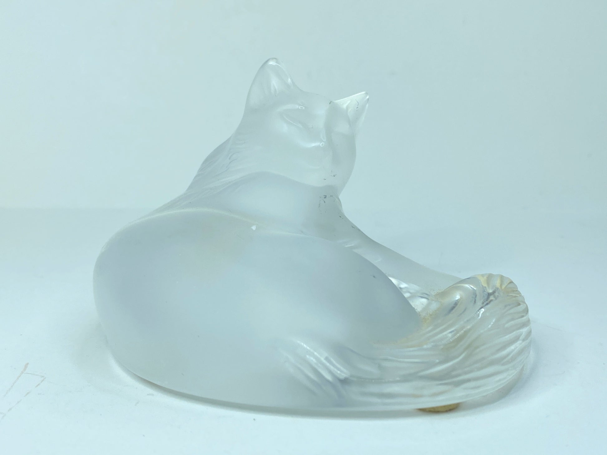 Lalique ''Happy Cat'' Crystal Figurine 3.5''. Frosted A519