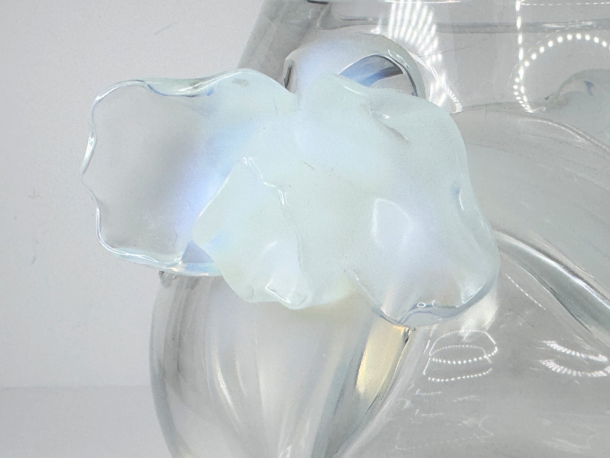 Lalique "Orchidee" Clear Crystal Vase Dimensional Opalescent Orchid Accents A505