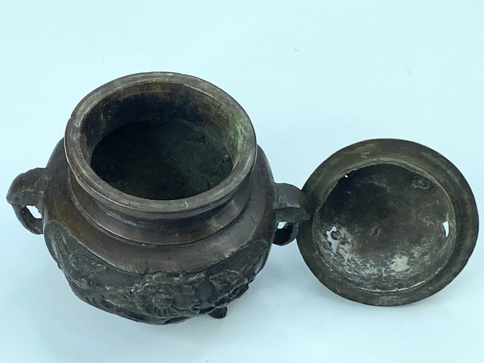 Mid-Century Chinese Mini bronze incense burner ShiShi on Cloud 3 3/8" A345