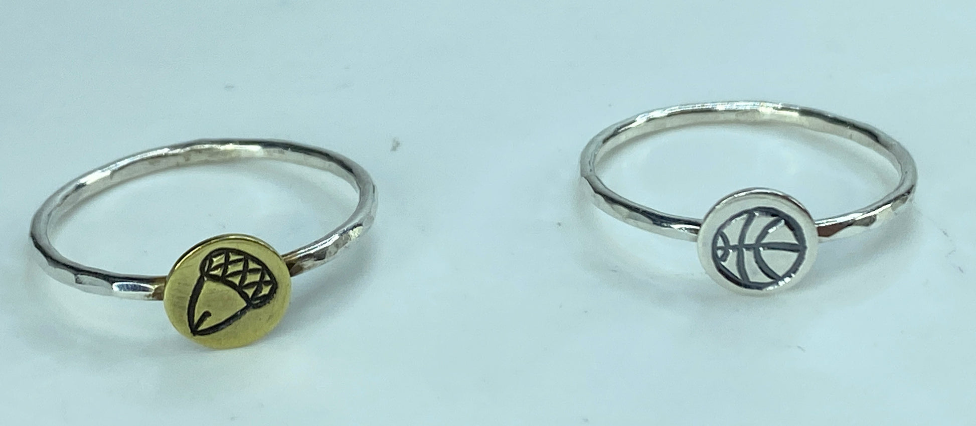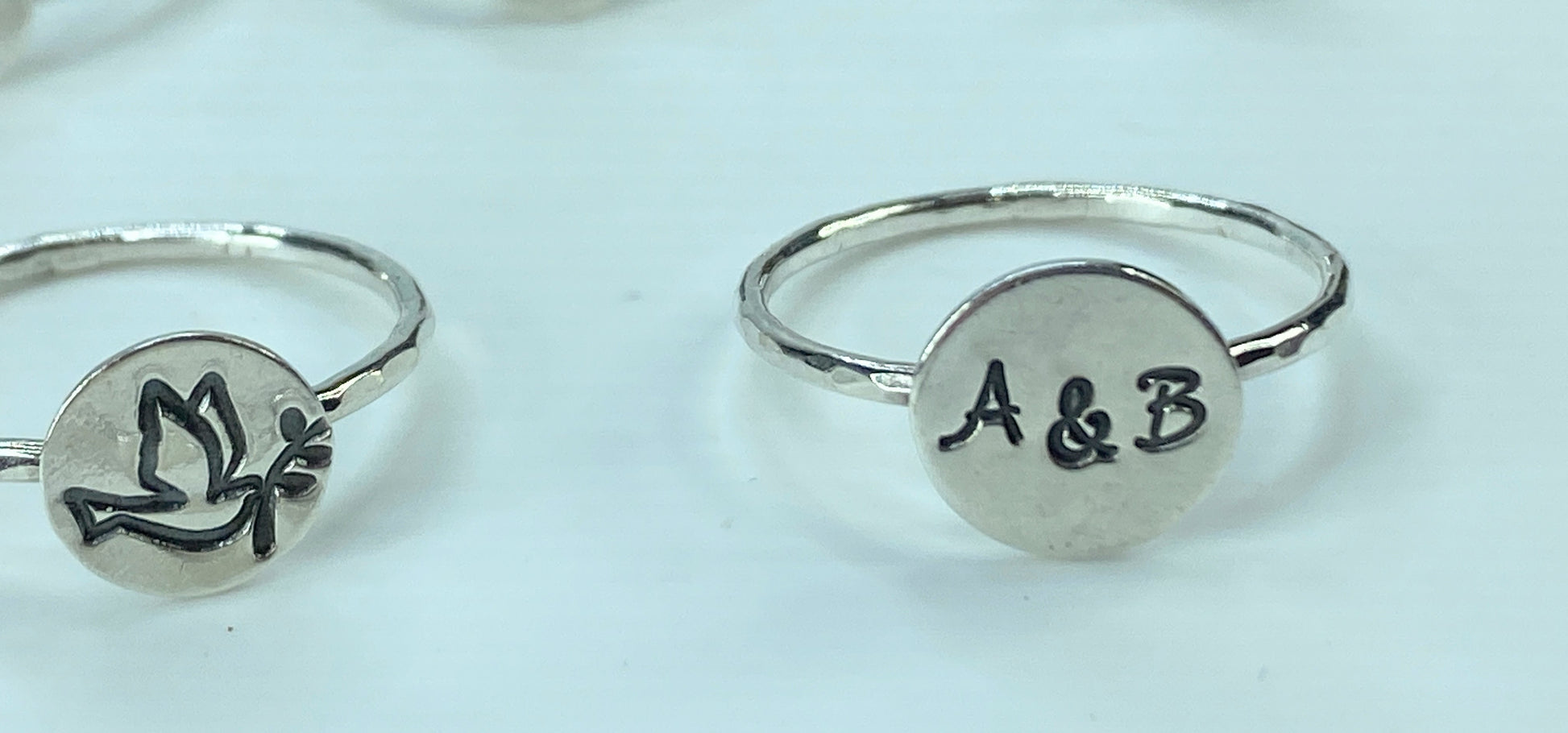 Minimalist Round Top Signet Ring – Sterling Silver with symbolic icon or letter initial. The majority are only one available, size range 6.5-8. Please specify which one you would like to buy.