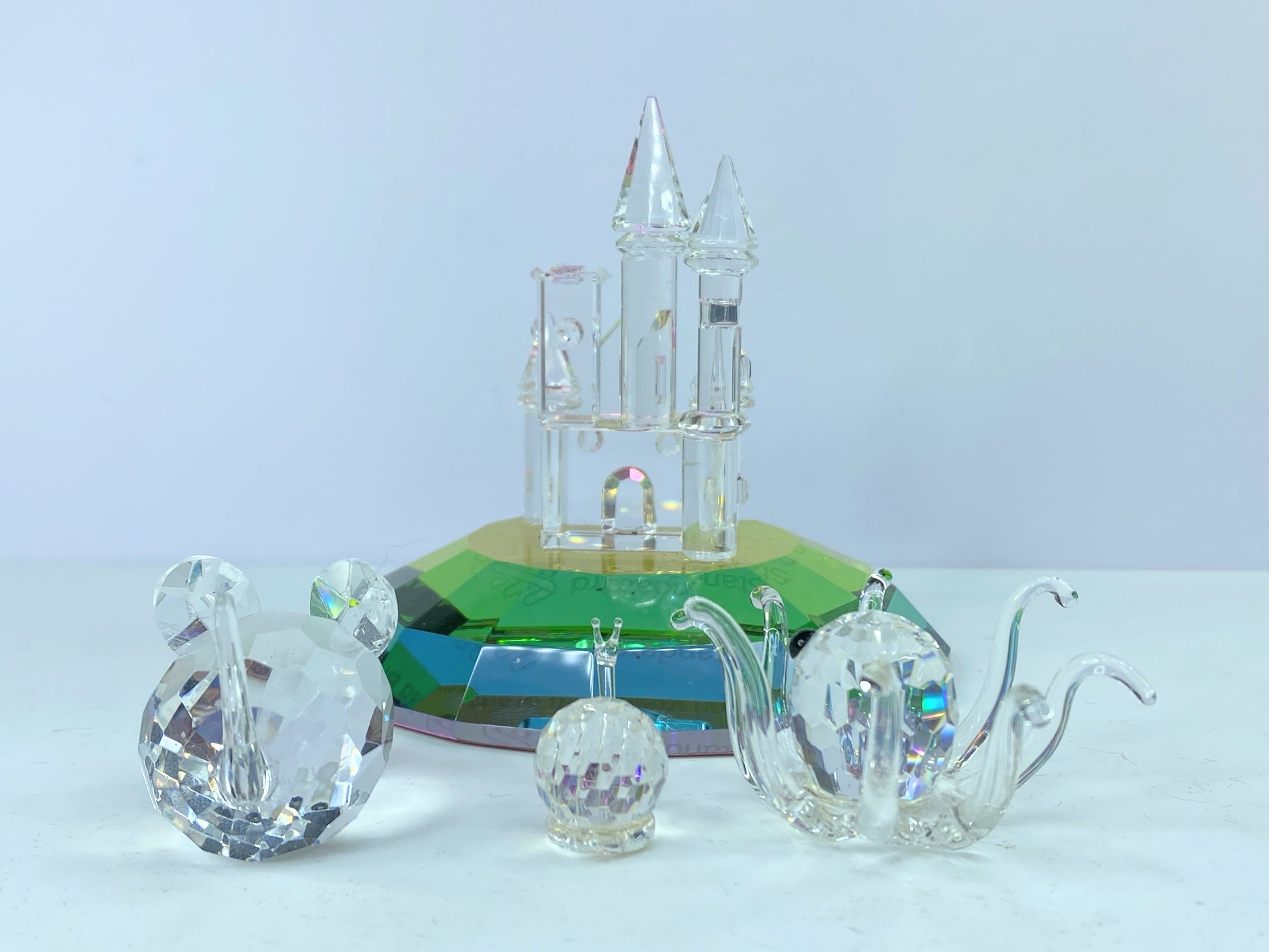 This is a nice set of crystal figurines; they include an enchanted castle with a reflective, iridescent base, a clear octopus, a large mouse, and a snail. They are in pristine condition, with no chips or cracks. The sizes are