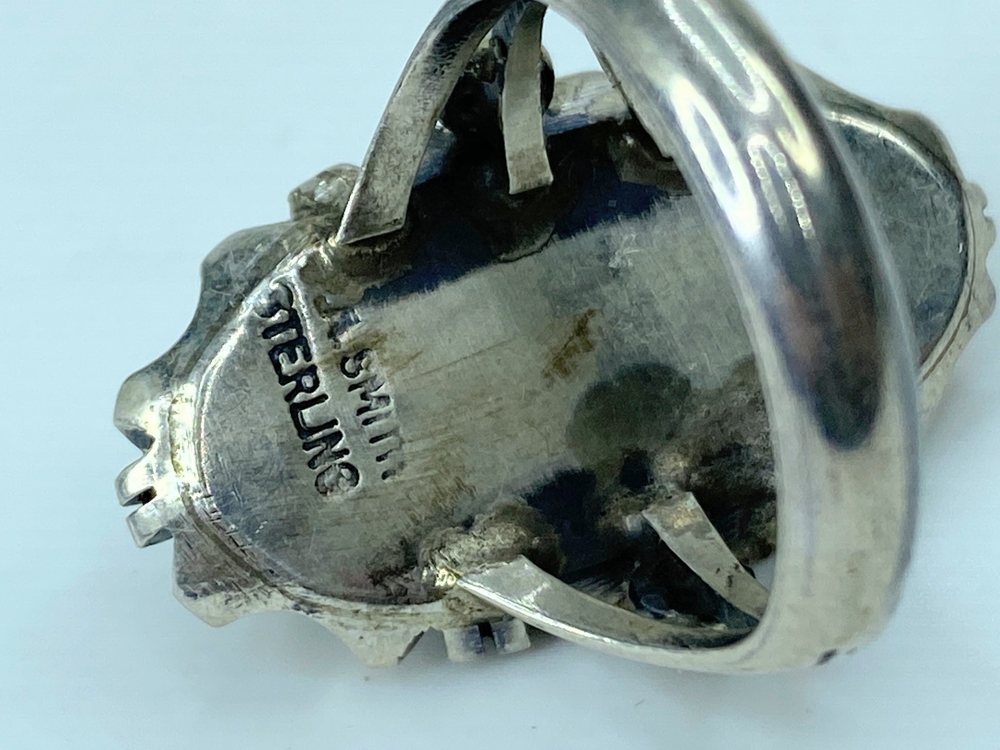 Old Pawn Navajo Signed A. Smith Sterling Silver Blue Turquoise s8.5 9.9g JR765