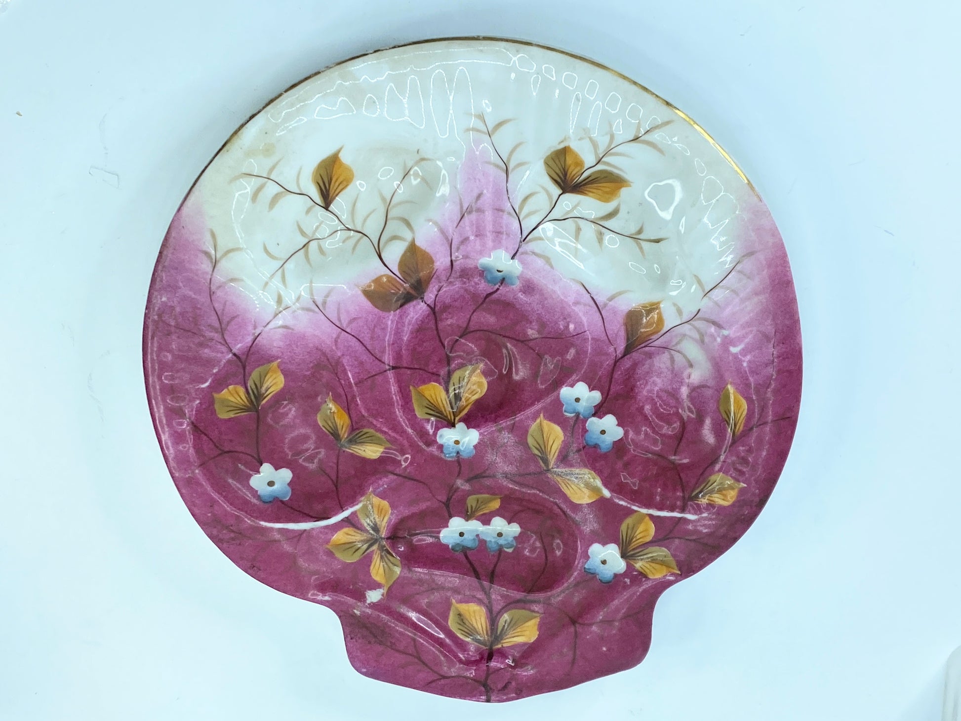 RARE 1861 German Erdmann Schlegelmilch hand-painted 5 well Oyster plate S431