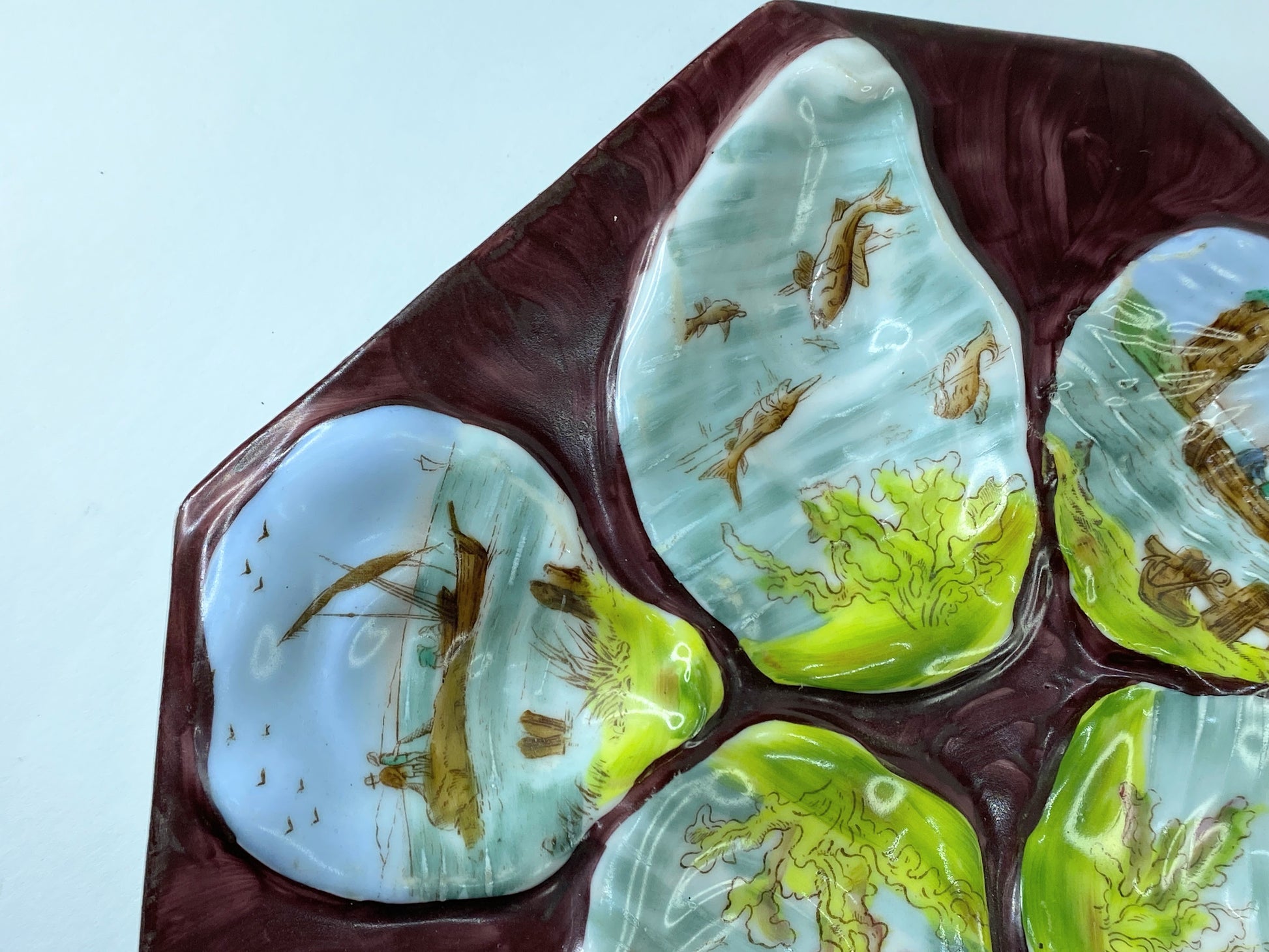 Rare Antique Hand-Painted Oyster Plate with Sea Creatures octagon design 8" A403