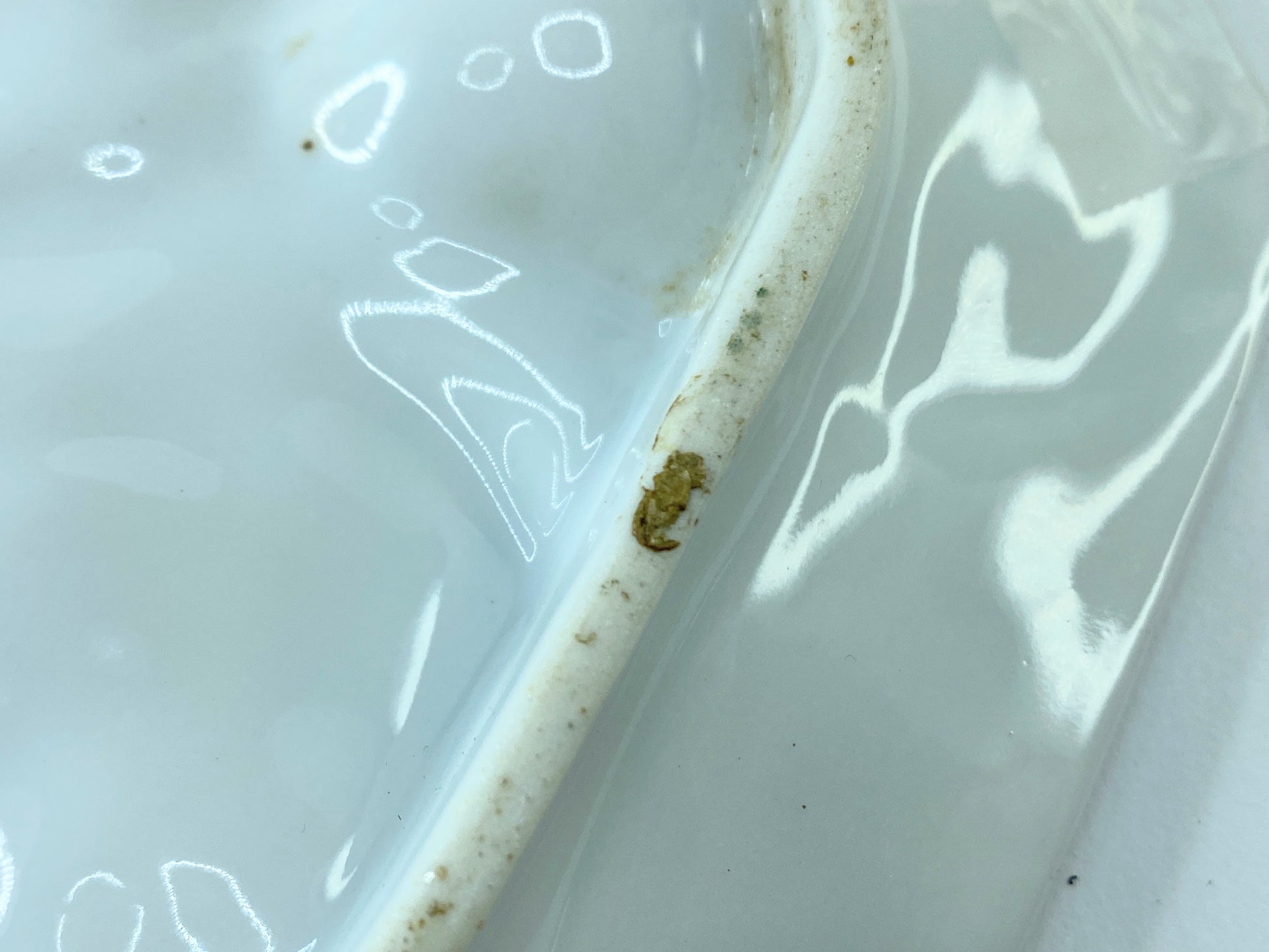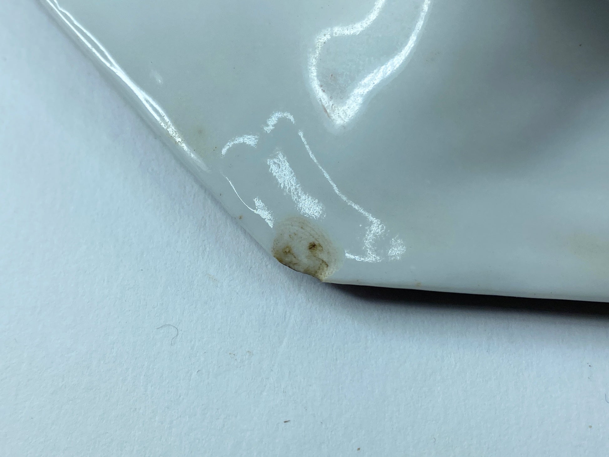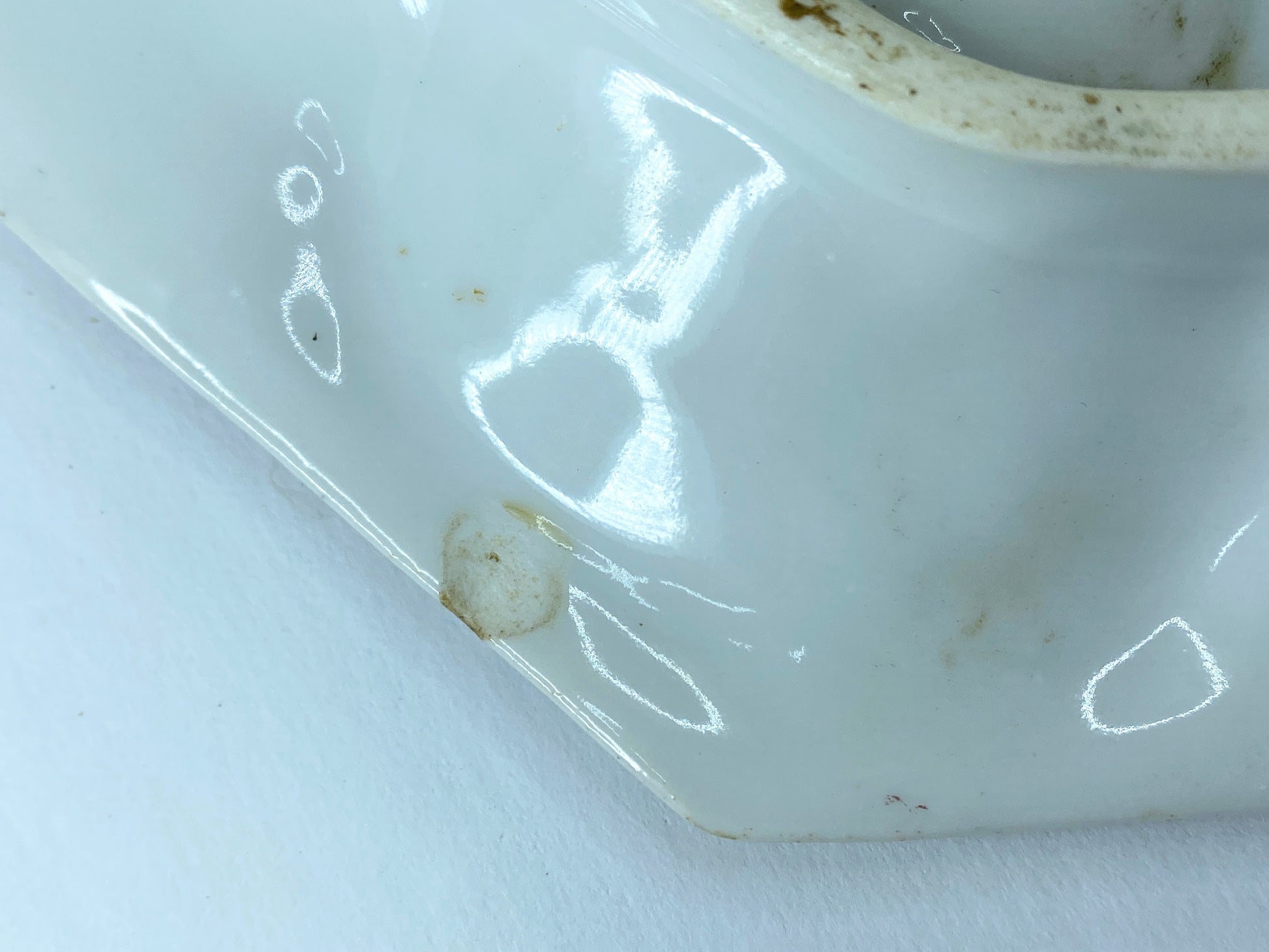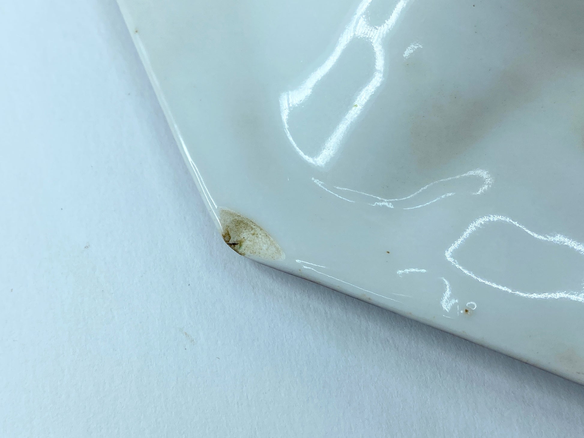 This antique oyster plate is a beautiful piece of porcelain, hand-painted with intricate details of sea creatures. It features a unique, multi-color design that enhances its charm, with an octagon shape and six well-represented ocean scenes in live action, on an earth-tone, brown background. It is an original piece from the late 19th century, featuring a style that is perfect for antique collectors. The intricately hand-painted sea life provided a fun dash of whimsy to this stunning oyster plate. Ideal addition for anyone’s collection! There are a few small chips; please refer to the photos for details. It measures 8" x 8", with a hallmark of 67 at the back.