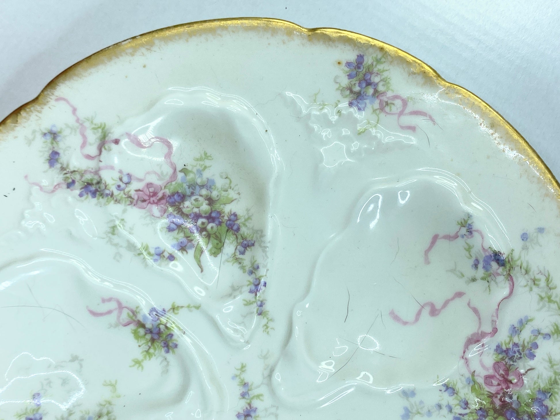 Rare GDA Limoges France 8.5" Oyster Plate Lavender Roses Circa 1906 Oyster A335
