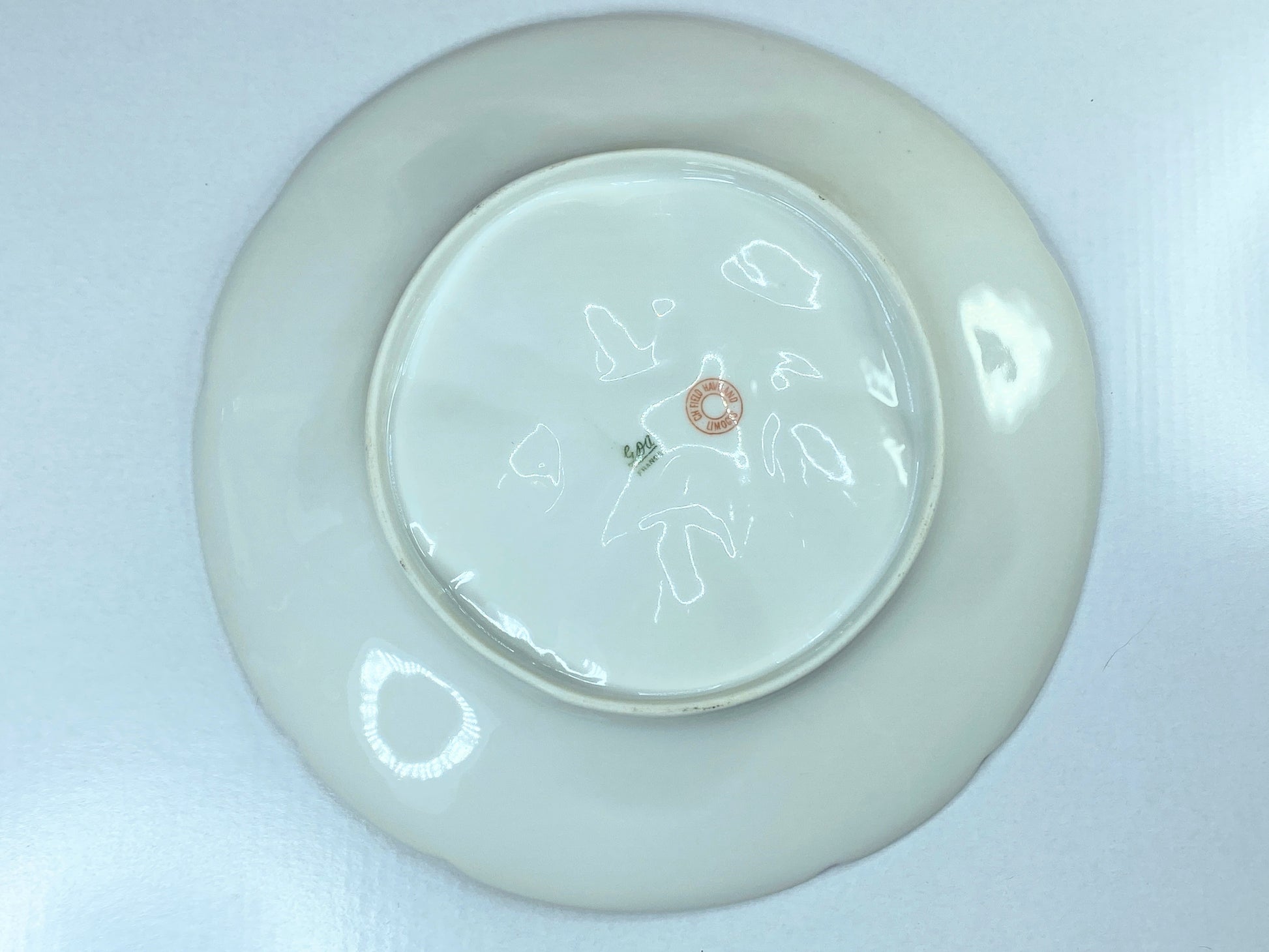 Add a touch of vintage elegance to your home decor with this exquisite GDA Limoges, France, collector plate. Featuring a beautiful pattern of LAVENDER roses and fish, this 8.75-inch round porcelain plate is handcrafted with intricate engraving details, making it a unique addition to any collection. The plate was produced in France during the Edwardian era (1901-1910) and features oyster recesses, adding to its historical value. This plate is perfect for display on special occasions.