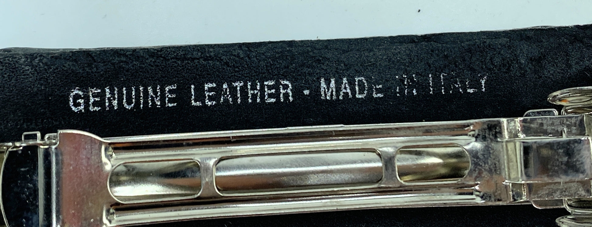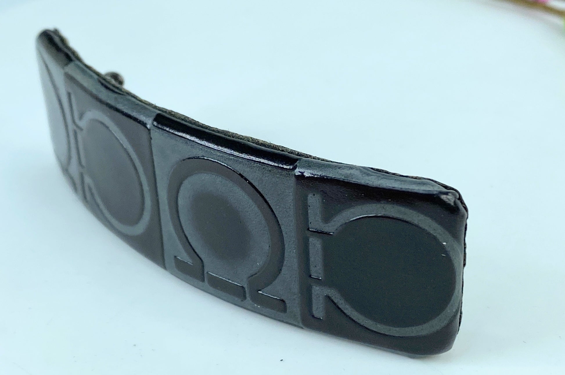 Rare Vintage Salvatore FERRAGAMO Black Leather Embossed Hair Barrette GS660