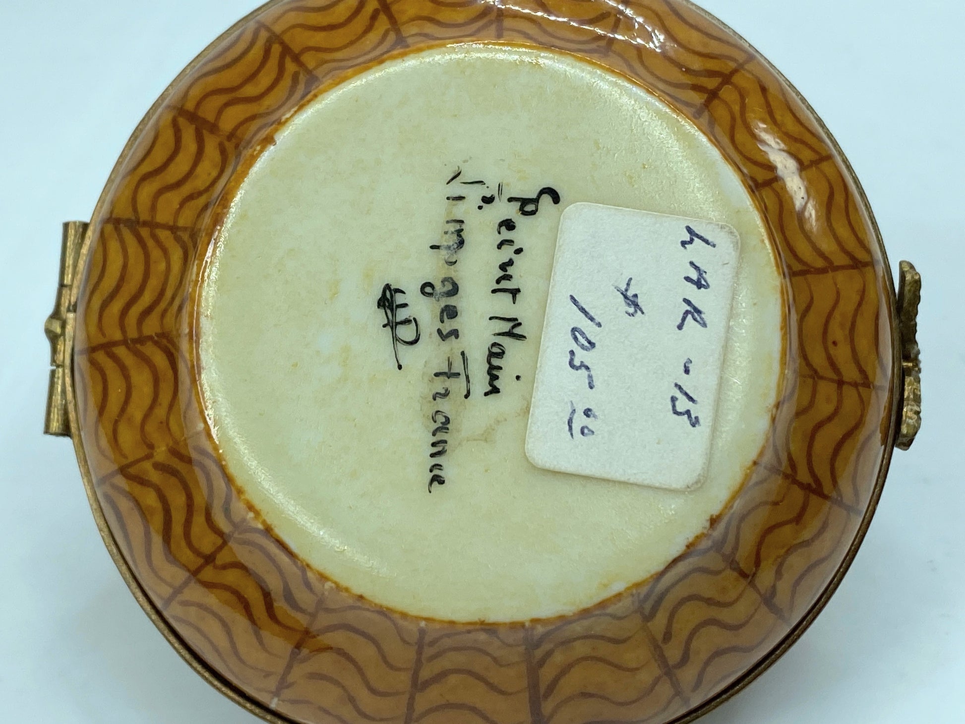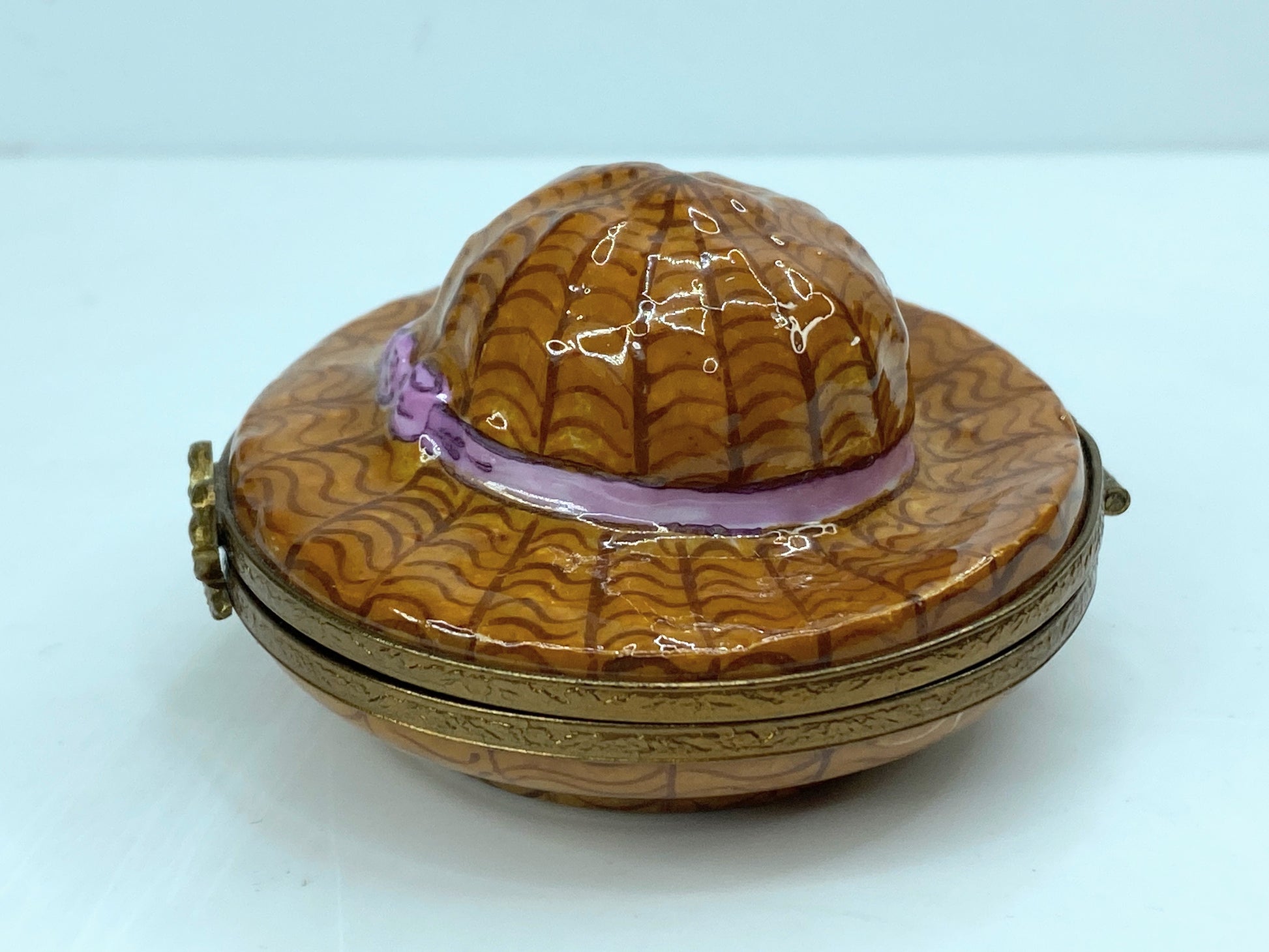 Retired c1990 Limoges, France Porcelain Ladies Straw Hat Shaped Trinket Box A562