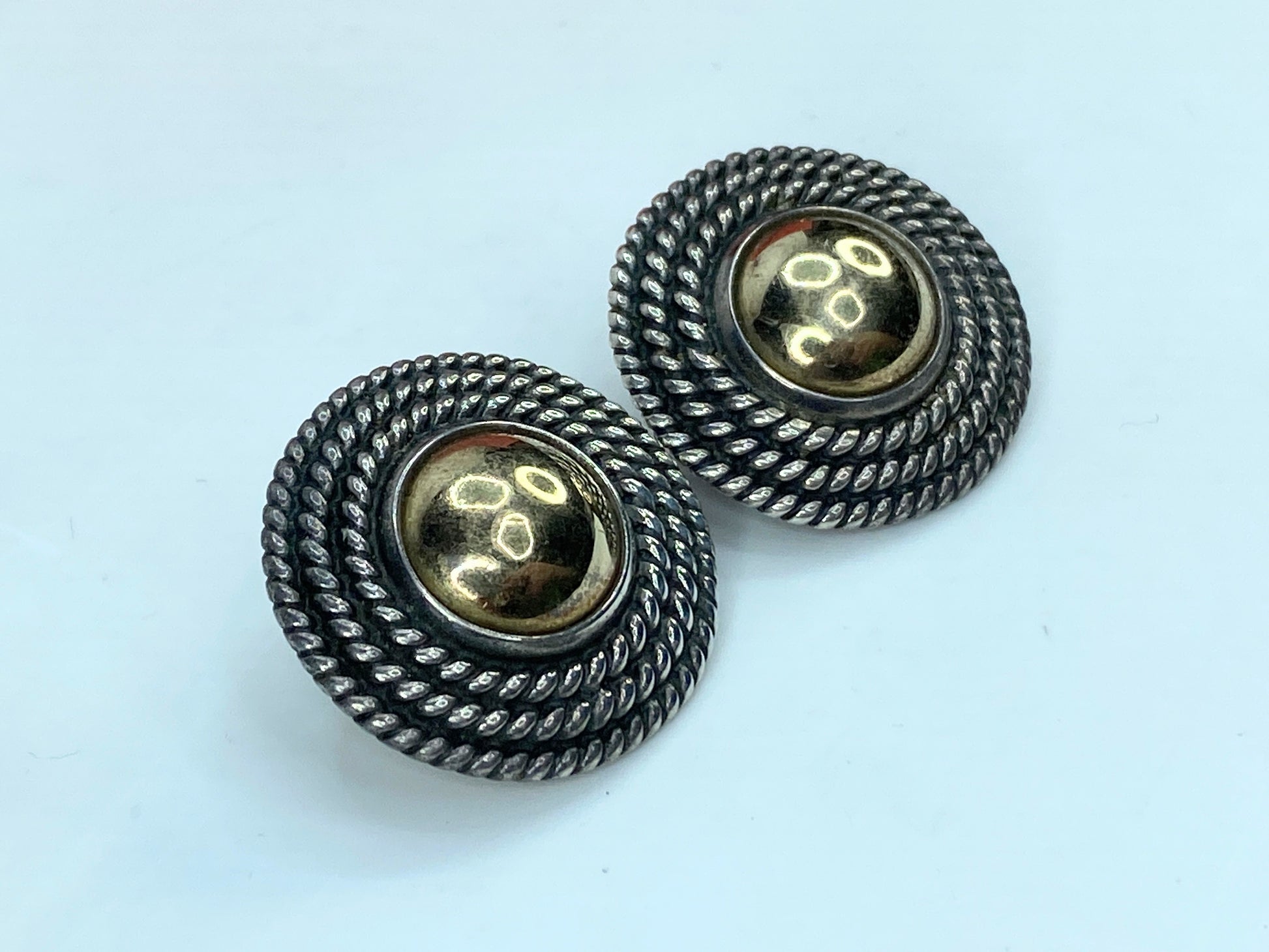 Retired James Avery large Round Rope 14K Domed Sterling rope Earrings