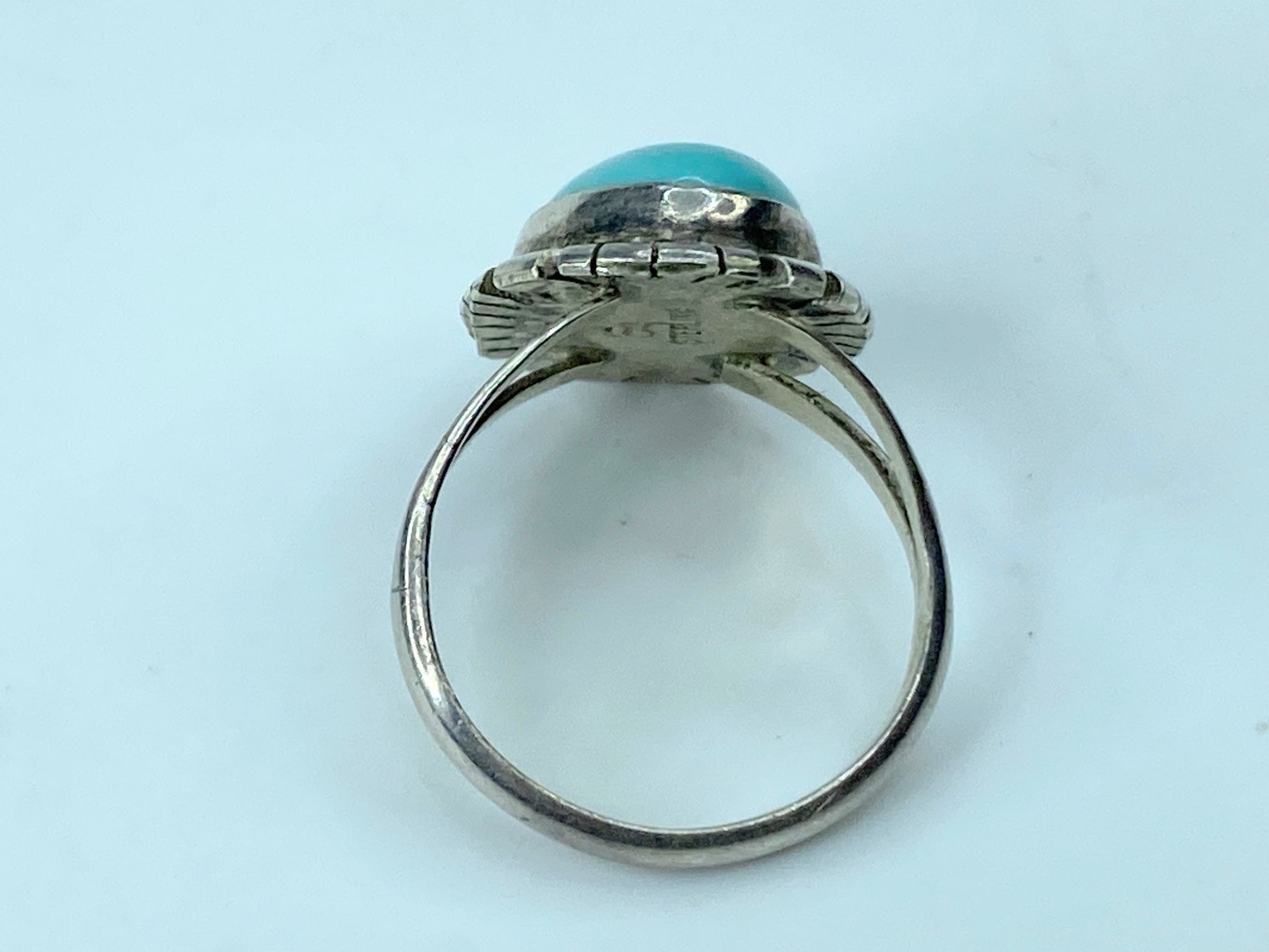 Signed 925 Sterling Silver Faux Turquoise feature ring size 7 JR763