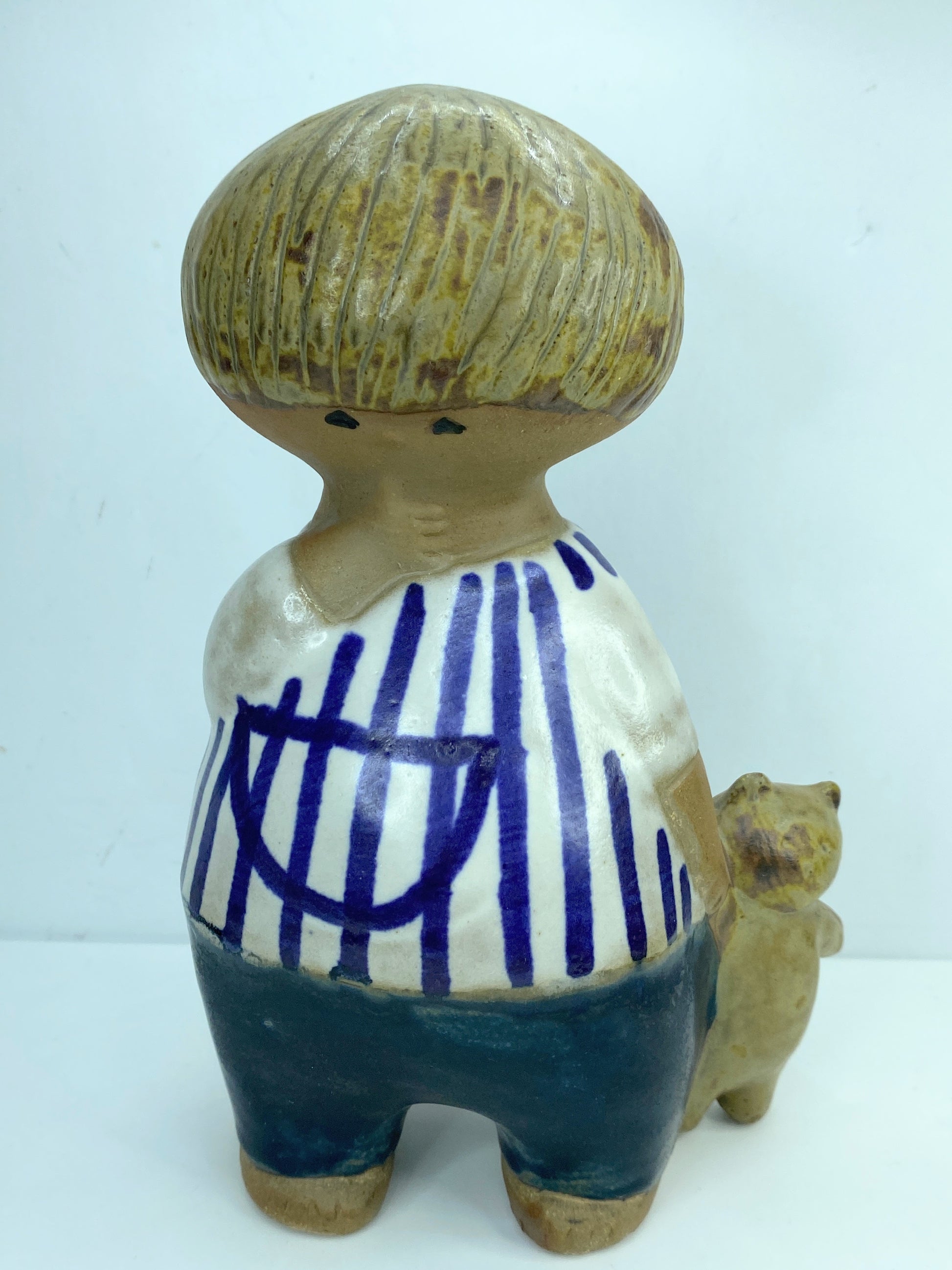 Lisa Larsson Gustavsberg Sweden "Malin" Boy W/ Teddy Bear Pottery Figure
