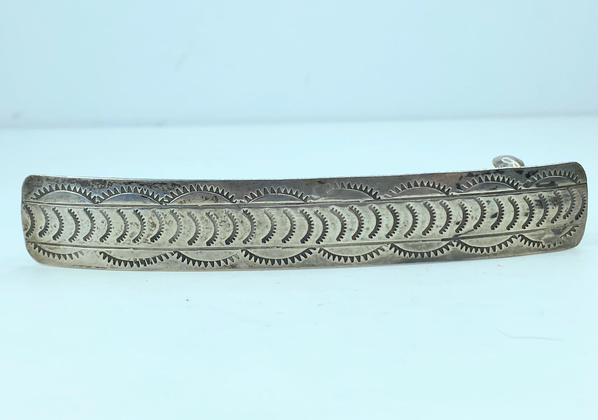 Southwestern Sterling Silver Minimalist Stamp-Patterned adorn barrette 4" SS107