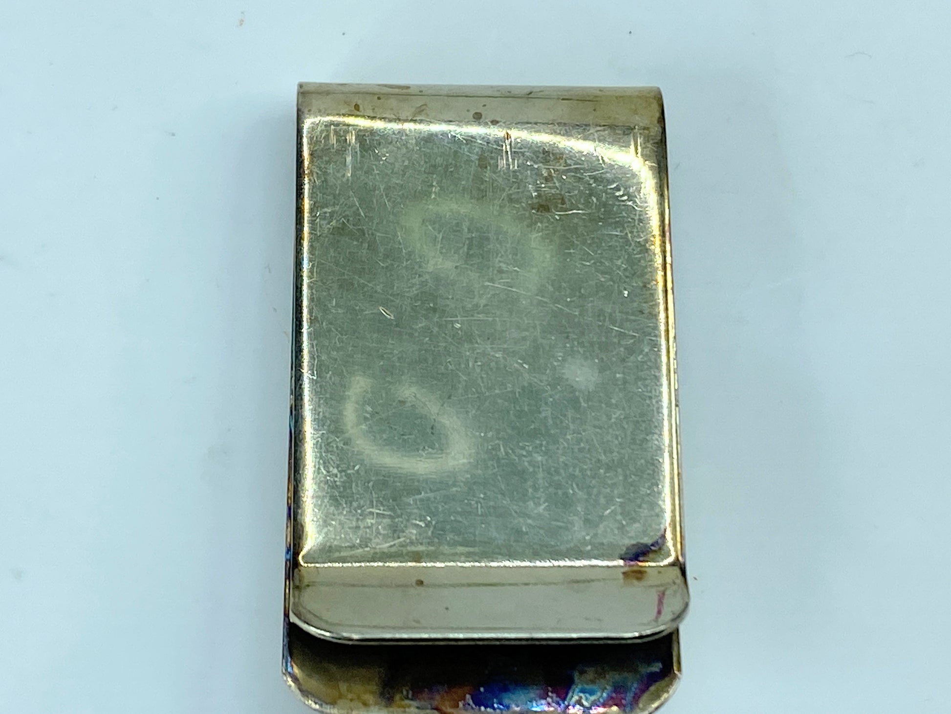 Vintage fine money clip circa 1980-1990. It features a sterling silver Eagle on the bottom of the clip with a feather above. The eagle is adorned with a Coral bead eye and a brass, copper color beak. The clip is in very good condition, and it needs cleaning. It measures 1 7/8" x 1 1/16", and it weighs 18.5 grams. No hallmark.