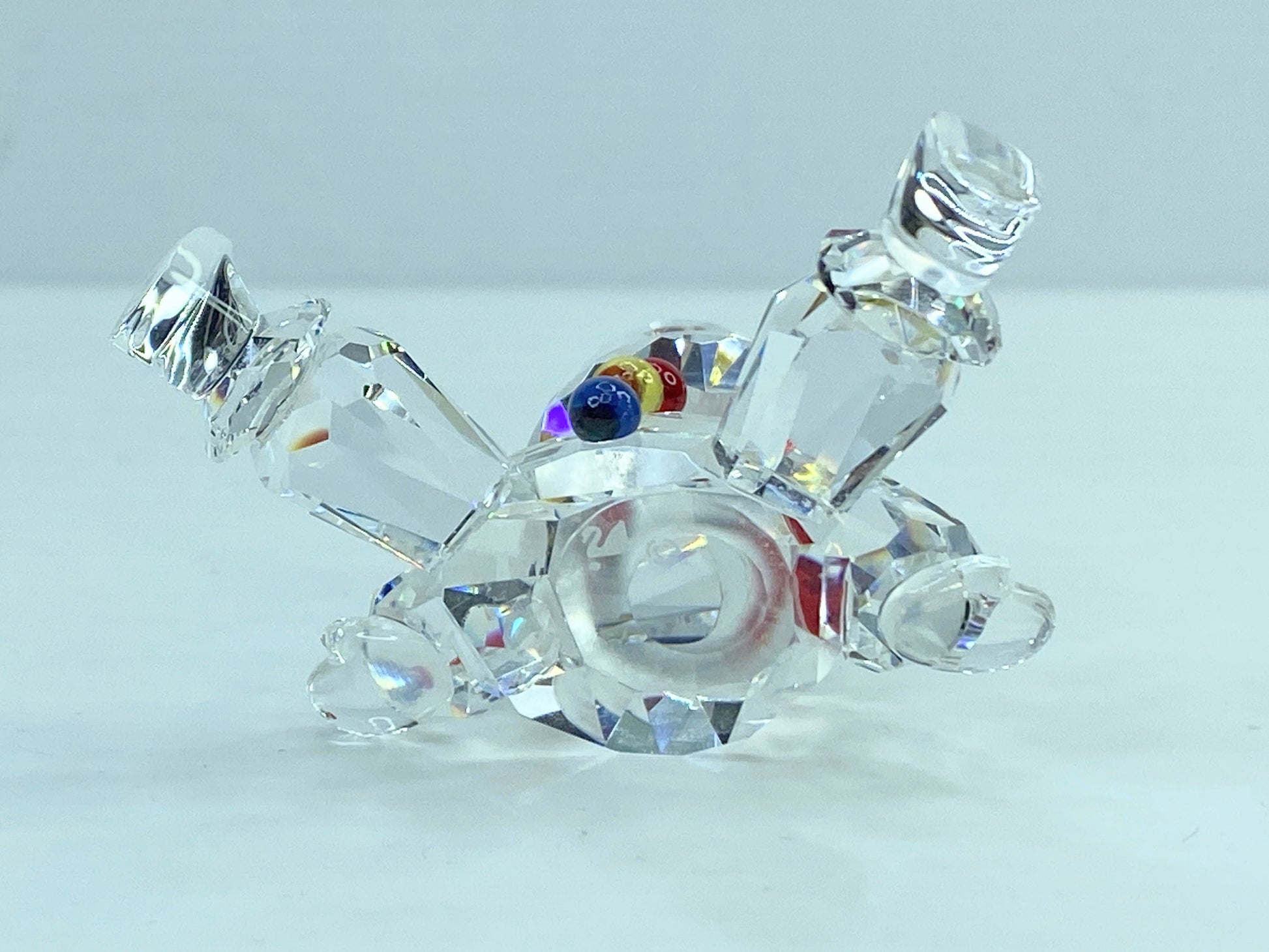 • Material: Clear faceted Swarovski crystal with colorful accents (red, yellow, blue).