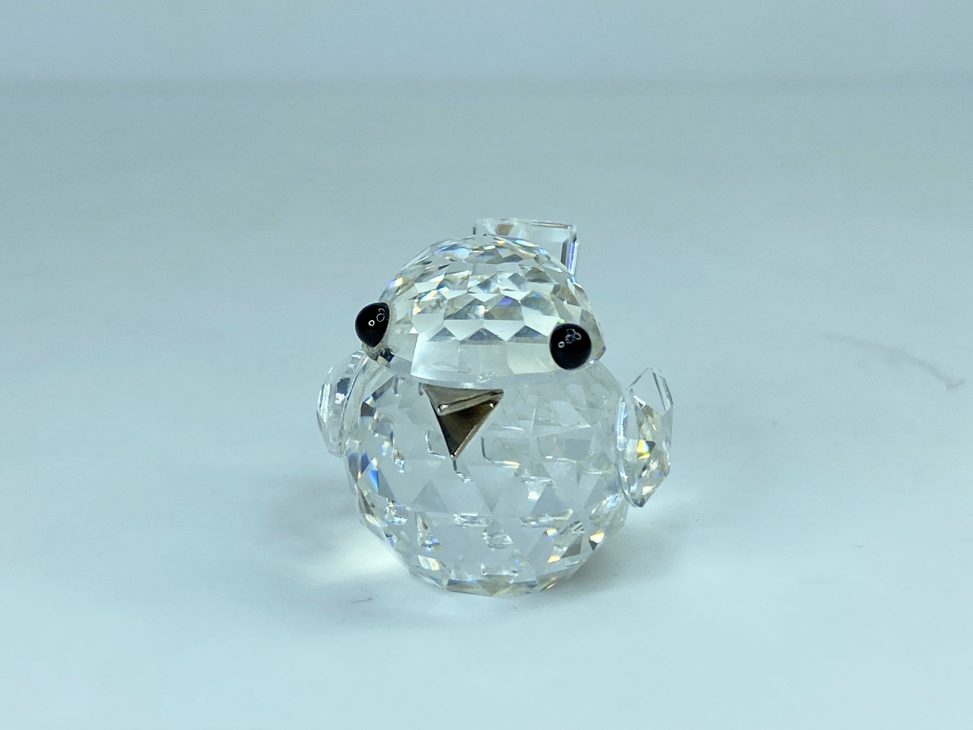 This tiny baby bird made of Swarovski crystal is vintage and in great shape. It was created by Max Schreck, debuted in 1979, and was retired in 1991. This cutie has a metal beak, black crystal eyes, and a clear crystal body. One of the first items in the "Mini Zoo" set.
